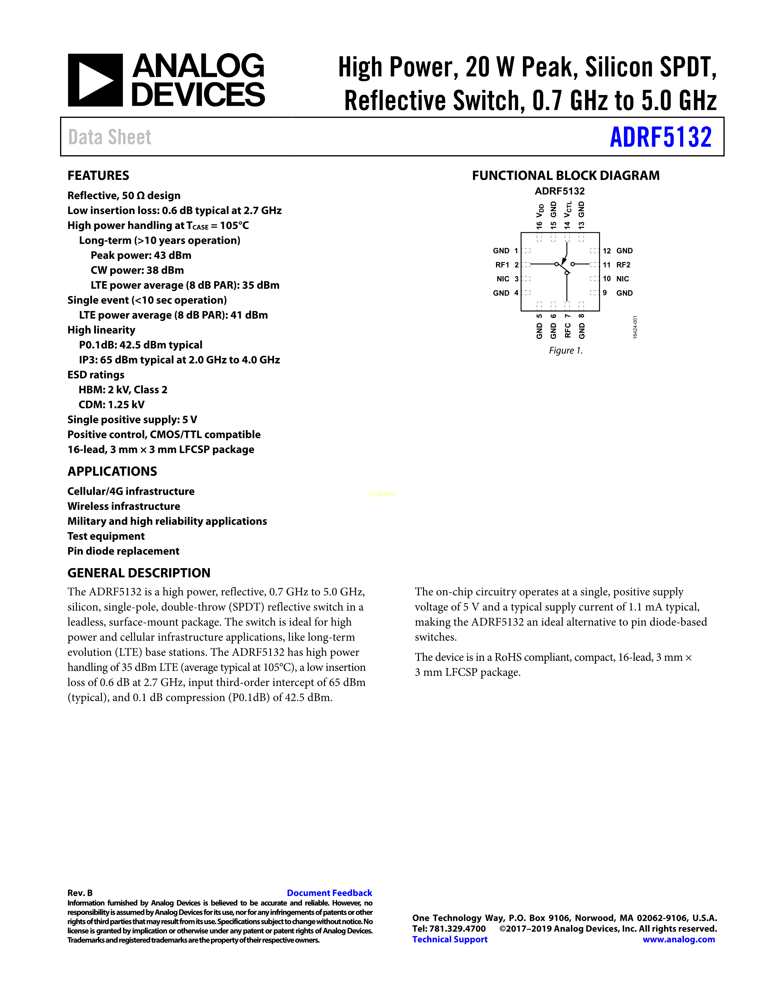 ADRF5132BCPZN-R7数据手册LFCSP-16封装ADI(亚德诺)-LINEARPDF规格