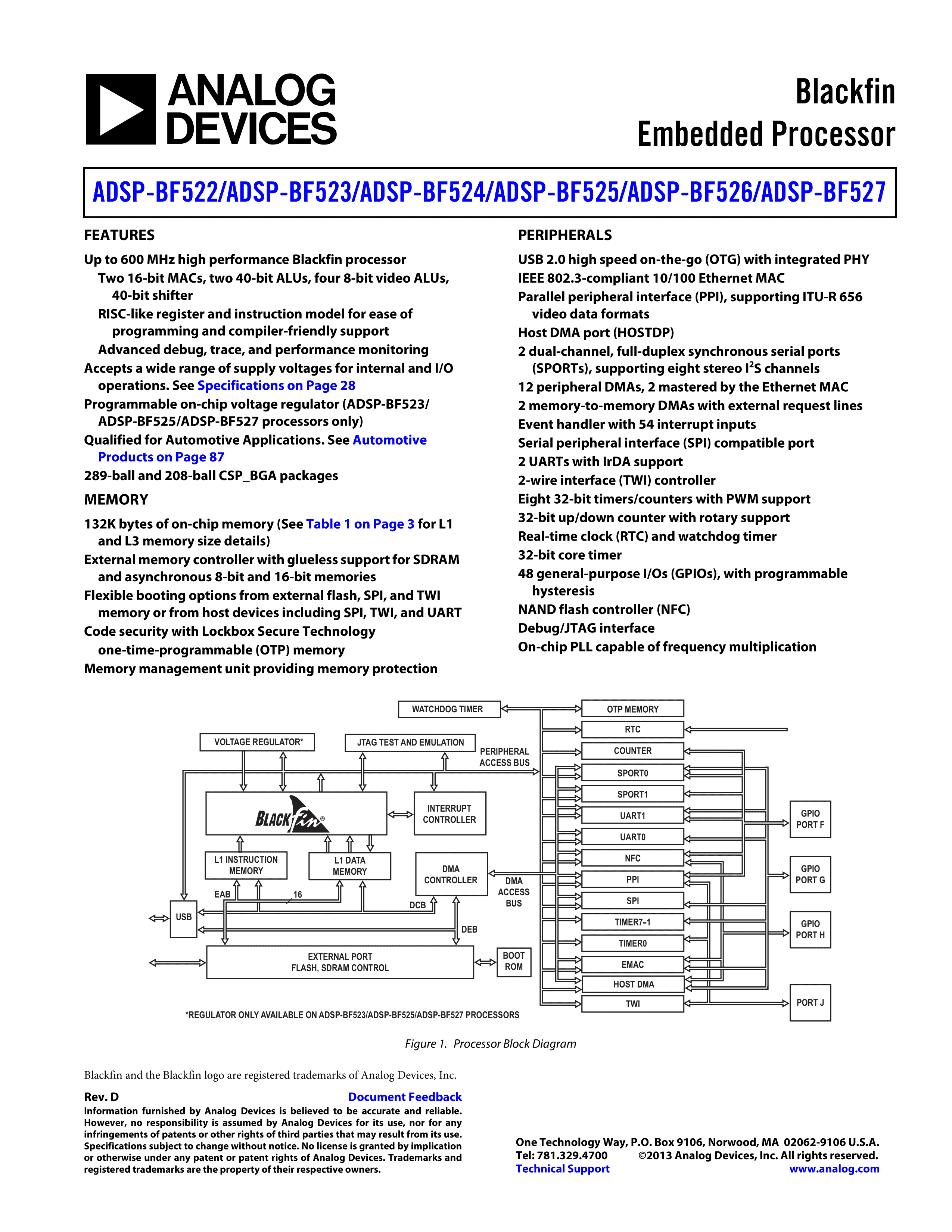 ADSP-BF526KBCZ-4数据手册BGA-289封装ADI(亚德诺)-LINEARPDF规格书