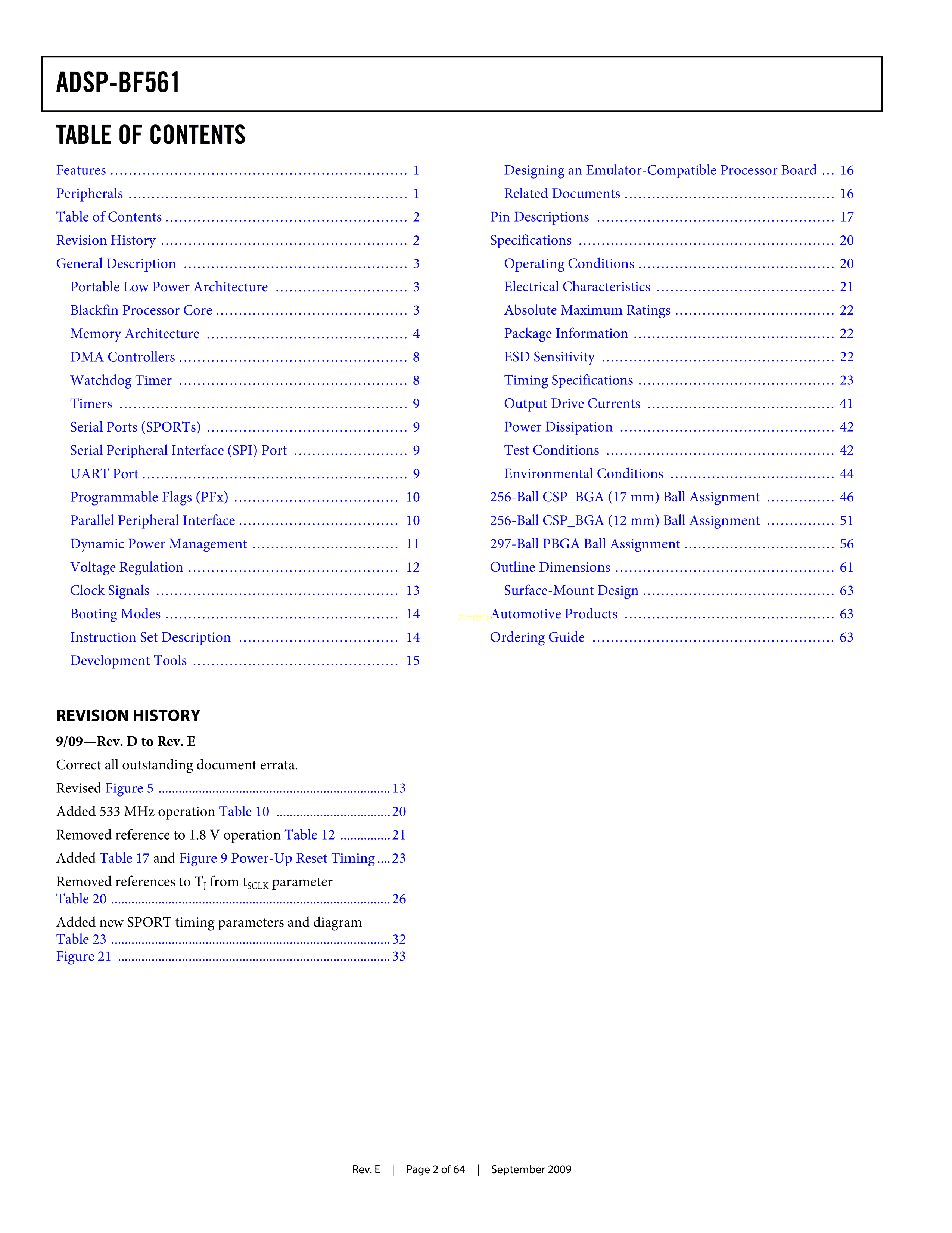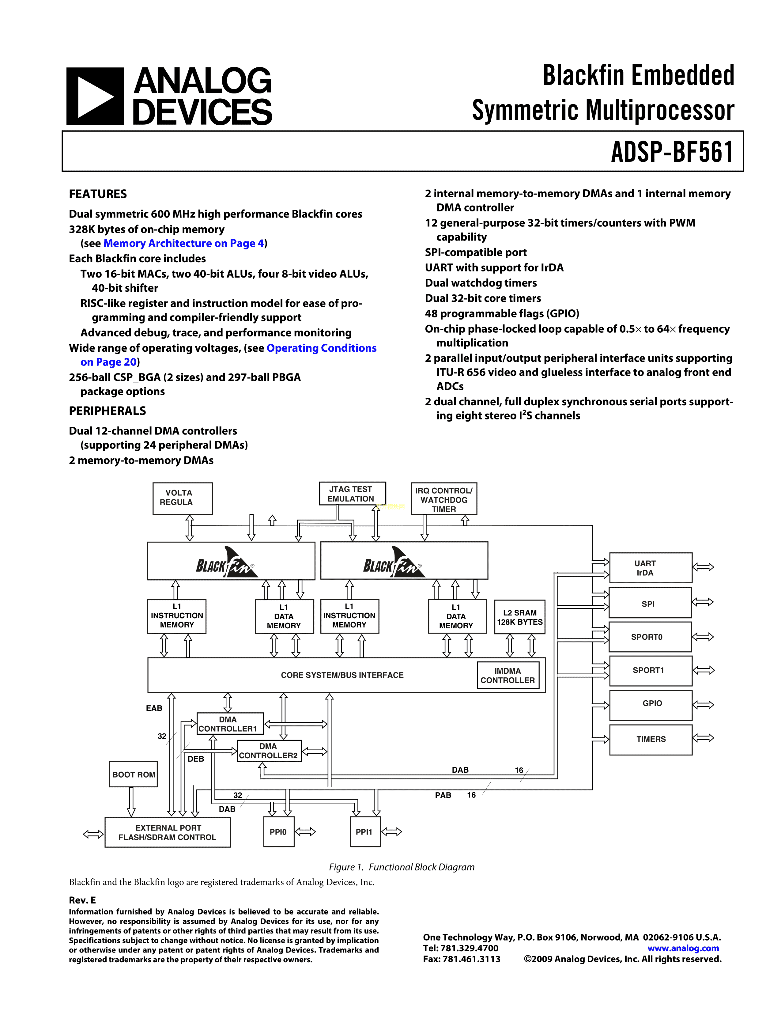 ADSP-BF561SKBZ600数据手册BGA-297封装ADI(亚德诺)-LINEARPDF规格