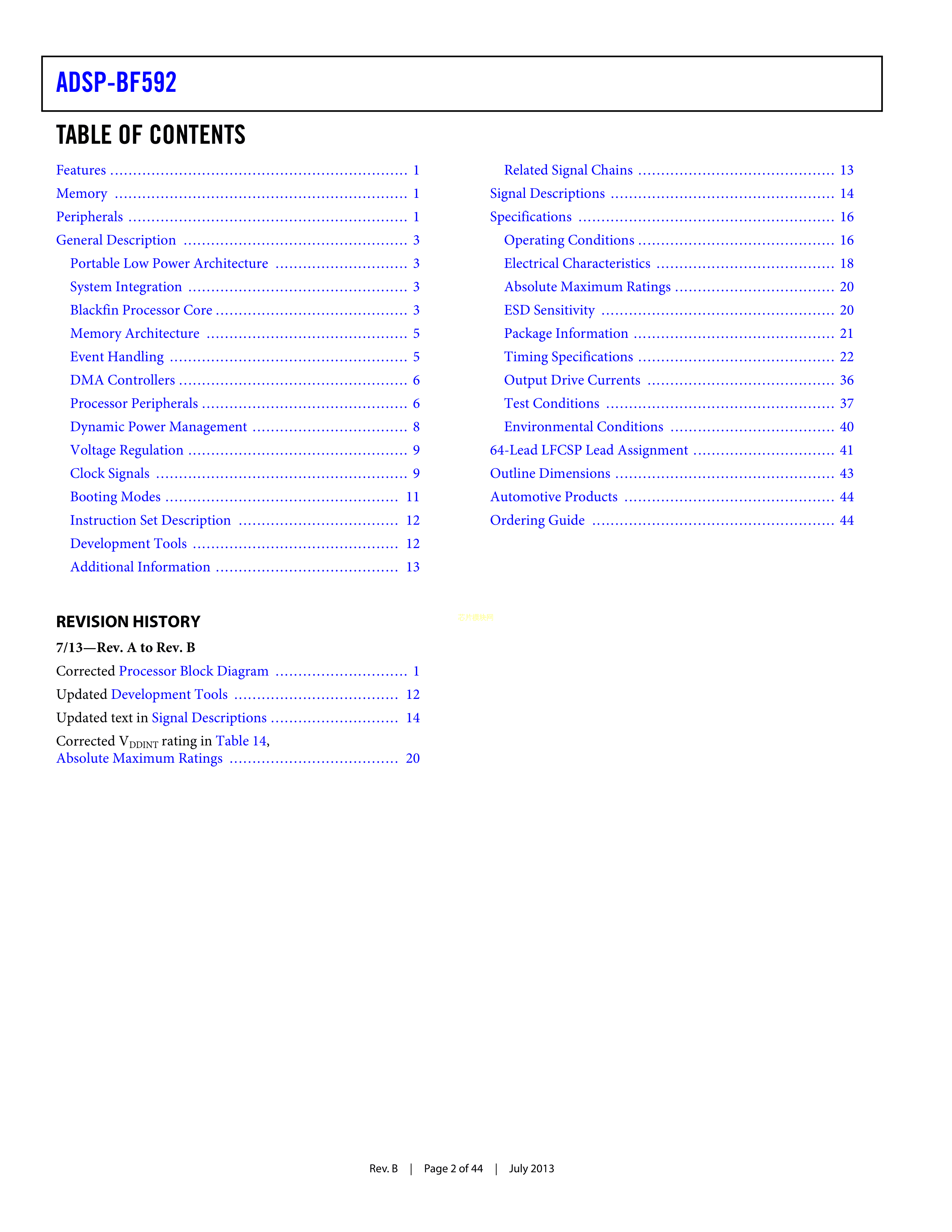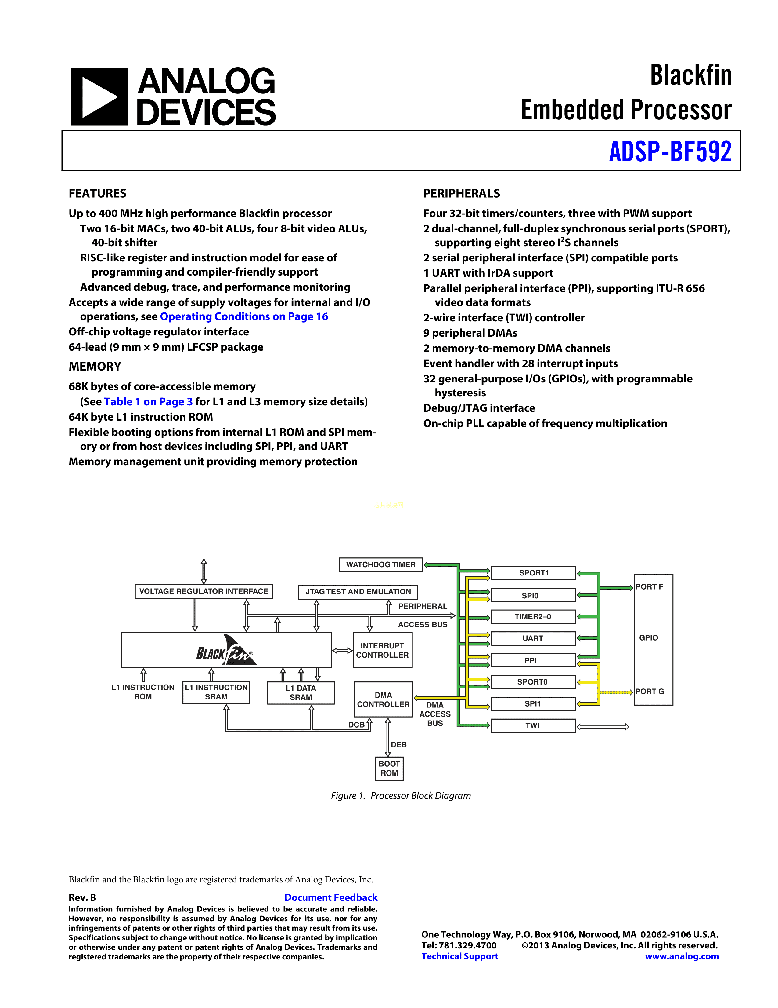 ADSP-BF592KCPZ-2数据手册LFCSP-64封装ADI(亚德诺)-LINEARPDF规格