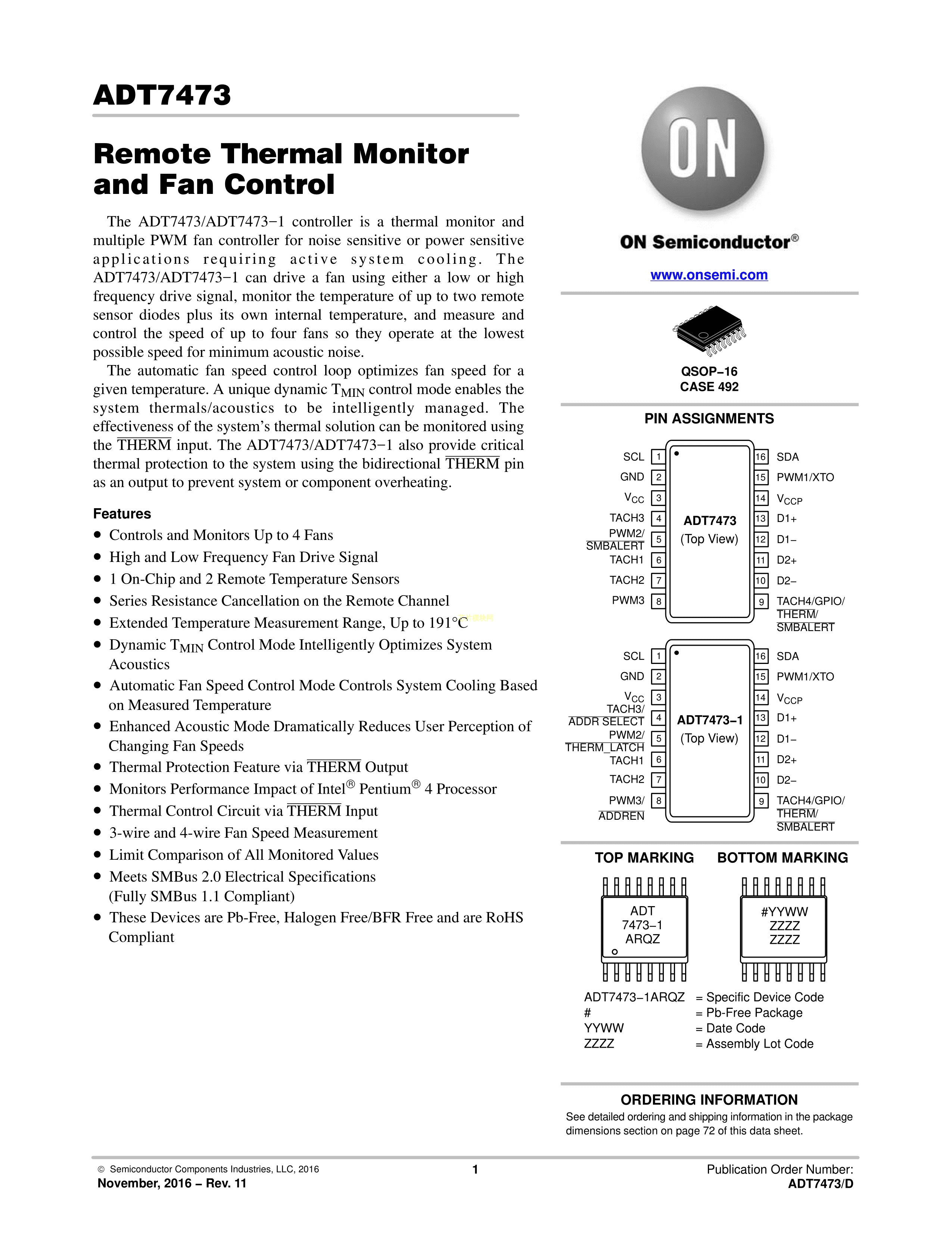 ADT7473ARQZ-1RL数据手册QSOP-16封装onsemi(安森美)PDF规格书,中英文下