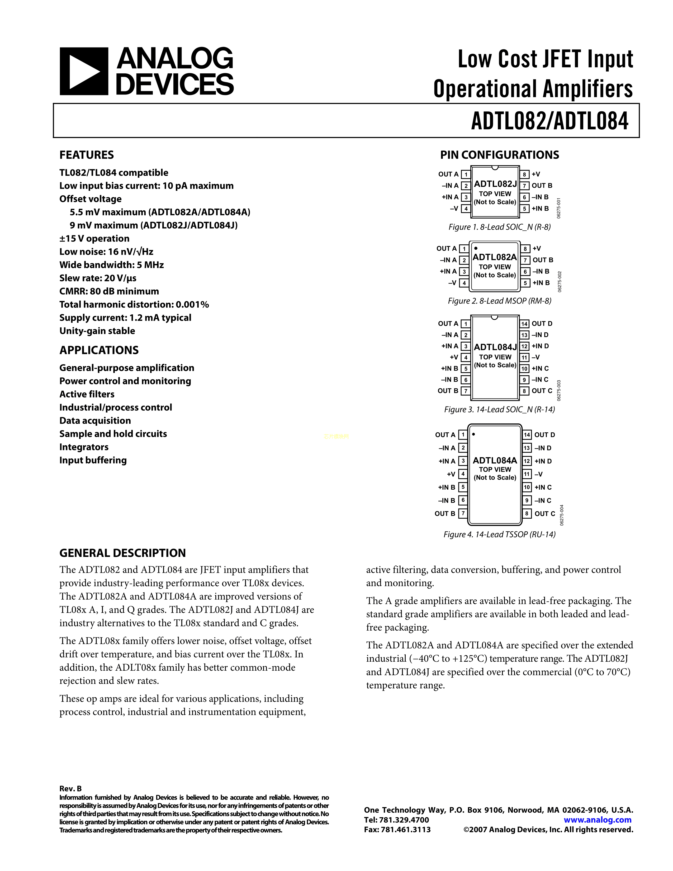 ADTL082ARZ-REEL数据手册SOIC-8封装ADI(亚德诺)-LINEARPDF规格书,中
