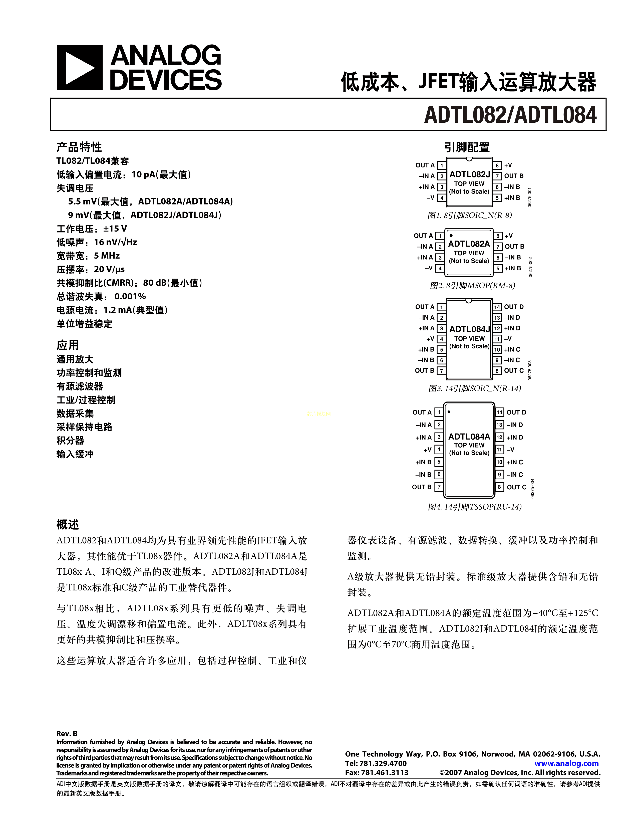 ADTL084ARZ-REEL7数据手册SOIC-14封装ADI(亚德诺)-LINEARPDF规格书