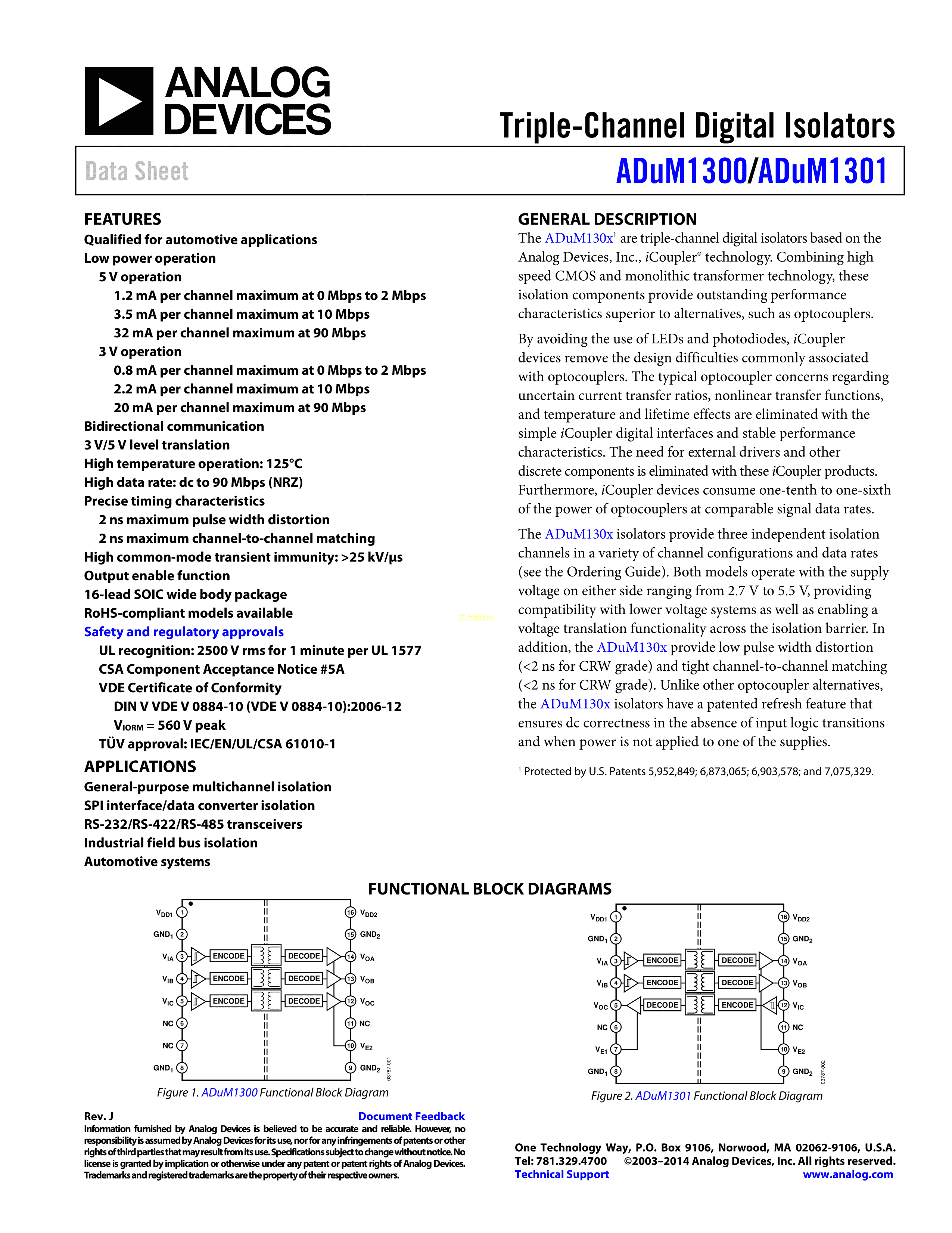 ADUM1300BRWZ-RL数据手册SOP-16_300mil封装ADI(亚德诺)-LINEARP