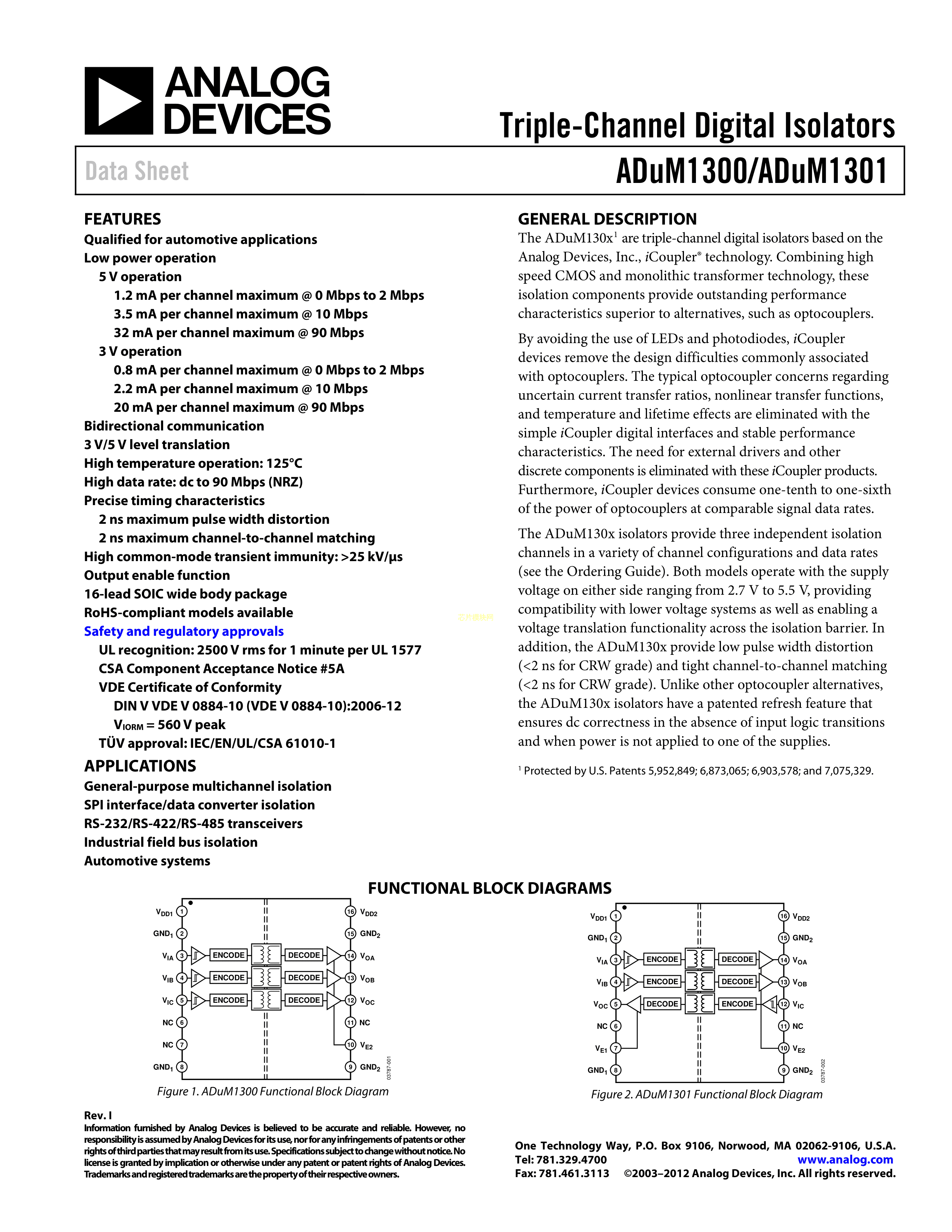 ADUM1301ARWZ-RL数据手册SOIC-16_300mil封装ADI(亚德诺)-LINEAR