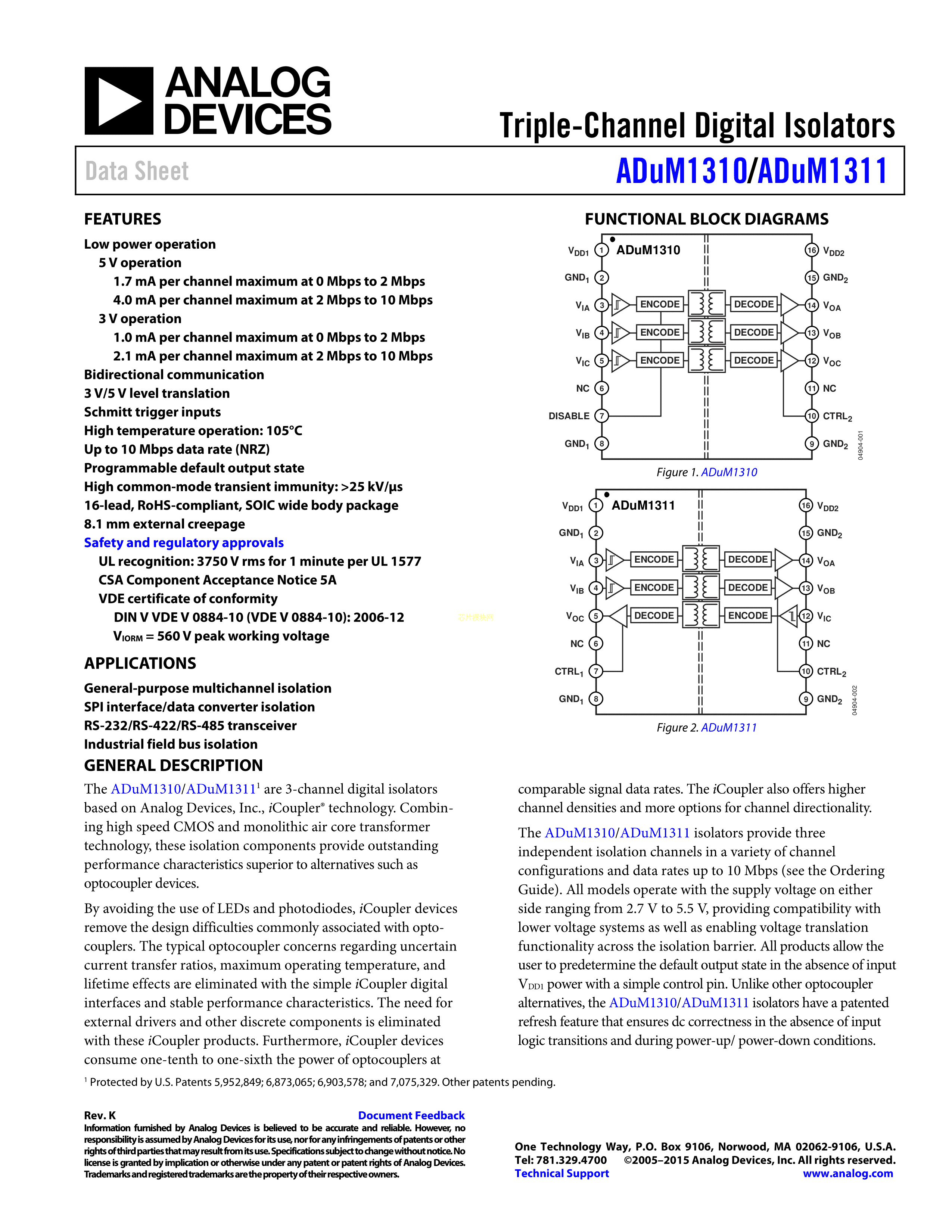 ADUM1310ARWZ-RL数据手册SOIC-16_300mil封装ADI(亚德诺)-LINEAR