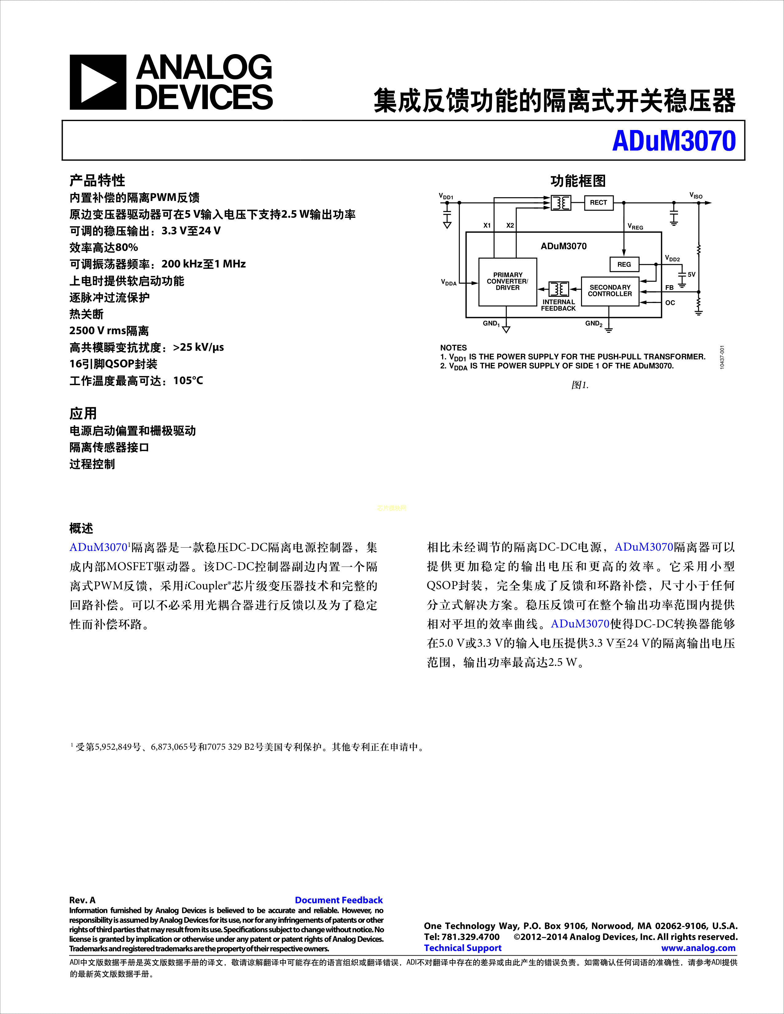 ADUM3070ARQZ-RL7数据手册QSOP-16封装ADI(亚德诺)-LINEARPDF规格书