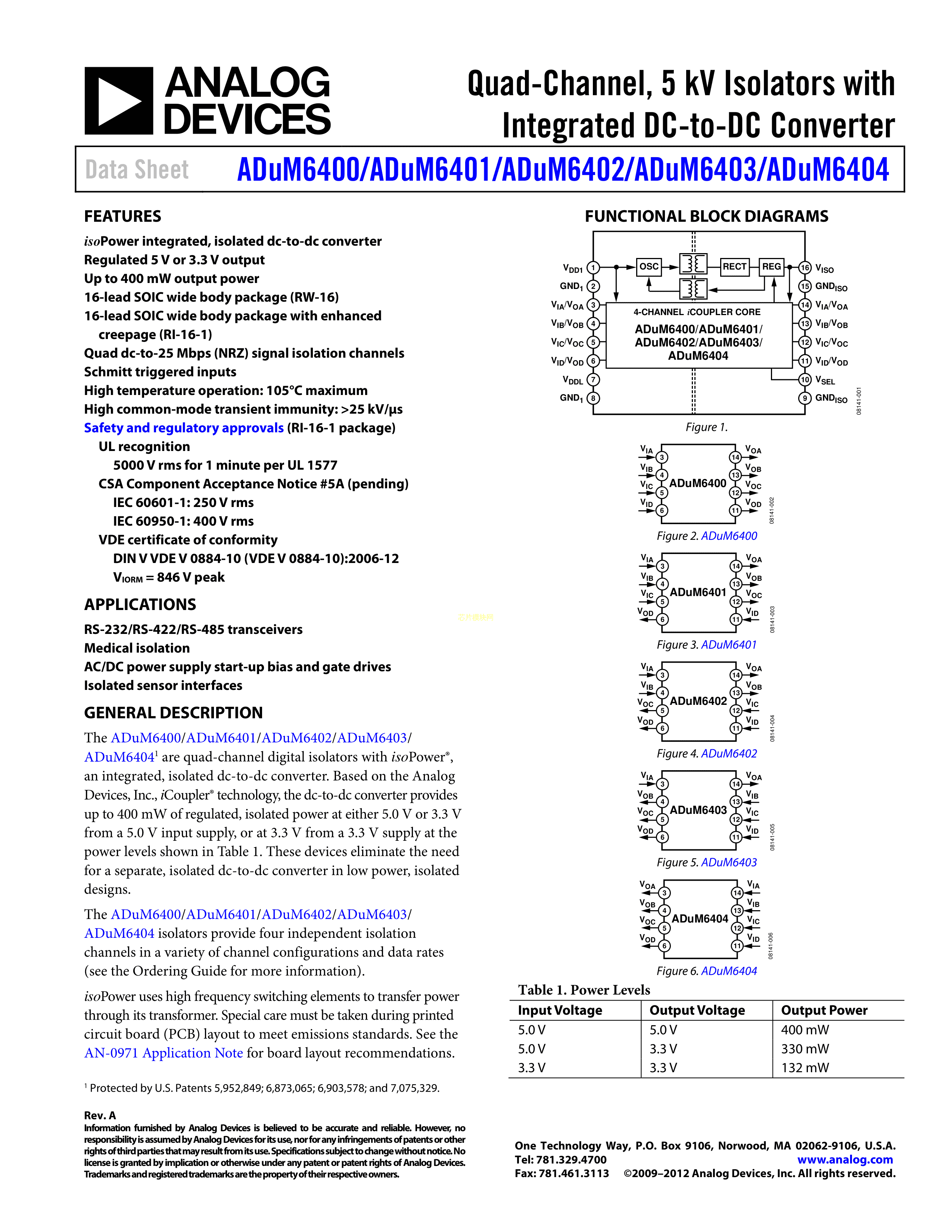 ADUM6400ARIZ数据手册SOIC-16_IC封装ADI(亚德诺)-LINEARPDF规格书,