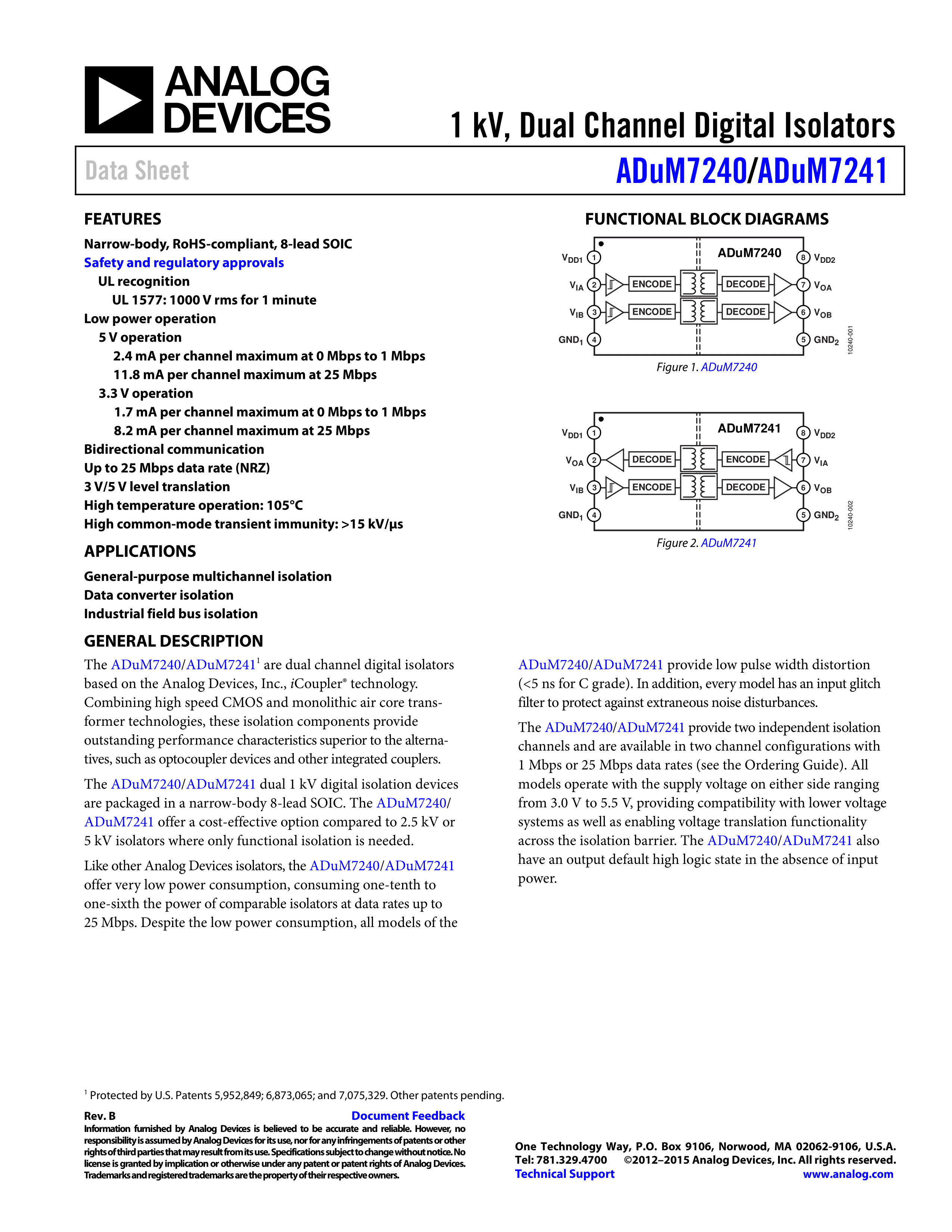 ADUM7241ARZ数据手册SOIC-8_150mil封装ADI(亚德诺)-LINEARPDF规格