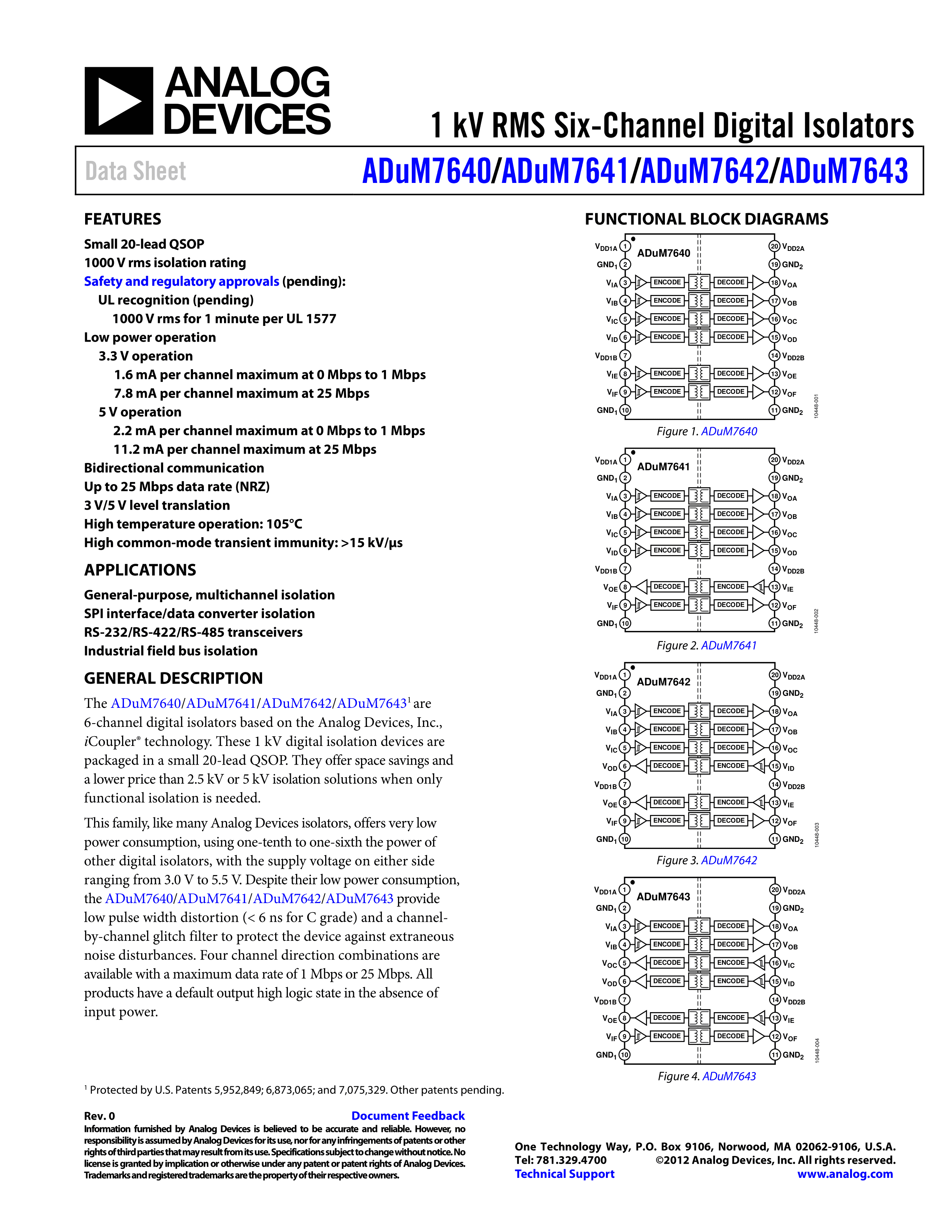 ADUM7640ARQZ-RL7数据手册QSOP-20封装ADI(亚德诺)-LINEARPDF规格书