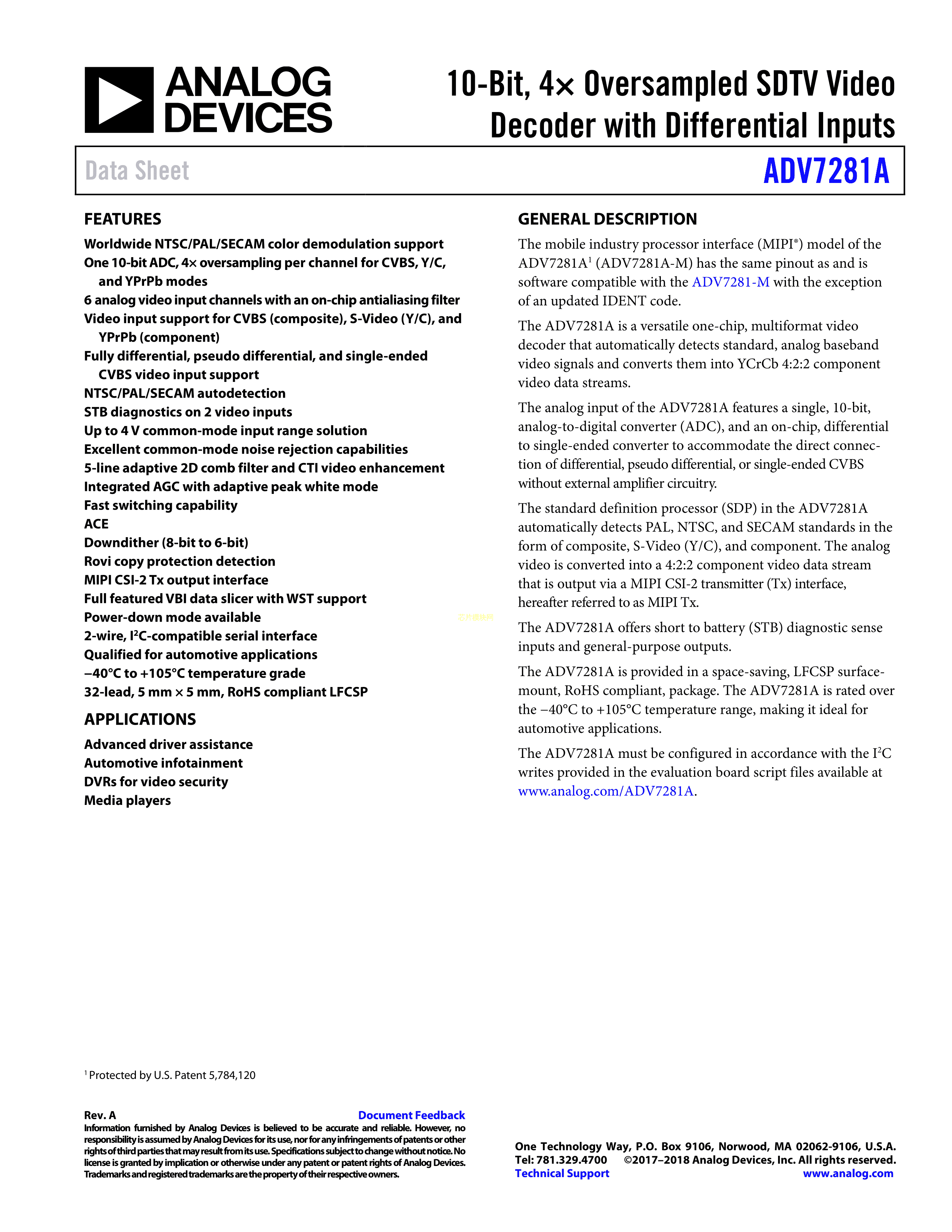 ADV7281AWBCPZ-M-RL数据手册LFCSP-32封装ADI(亚德诺)-LINEARPDF