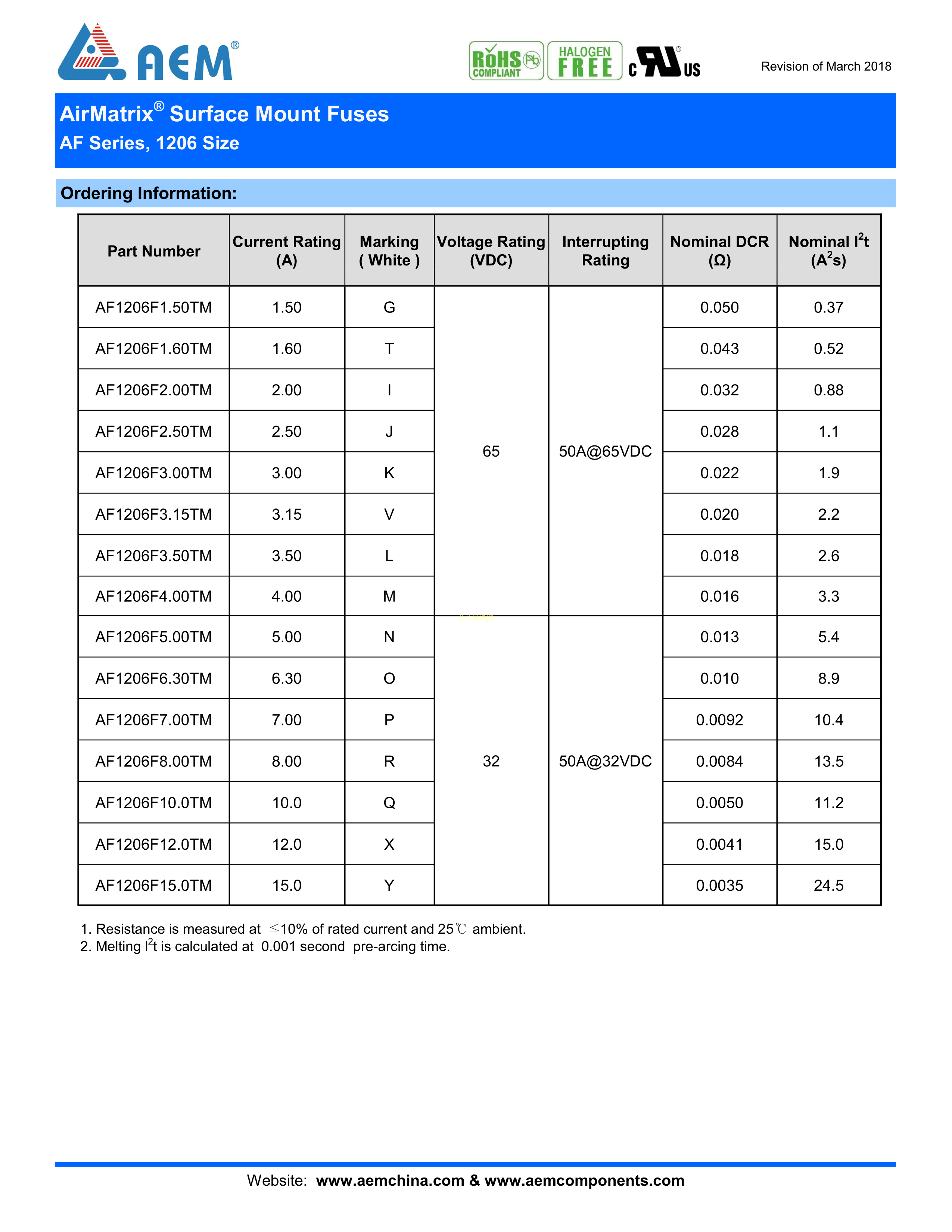 AF1206F1.50TM数据手册1206封装AEMPDF规格书,中英文下载