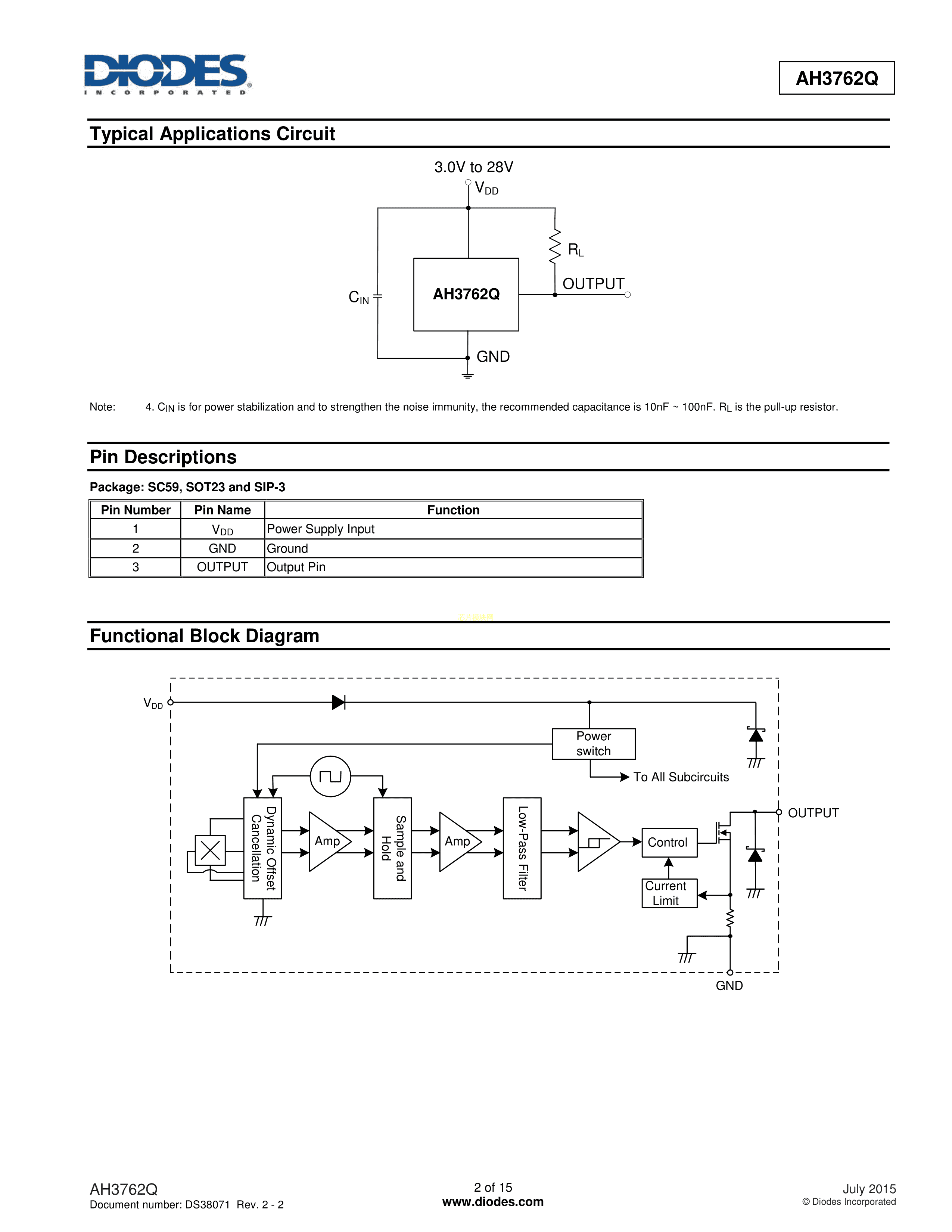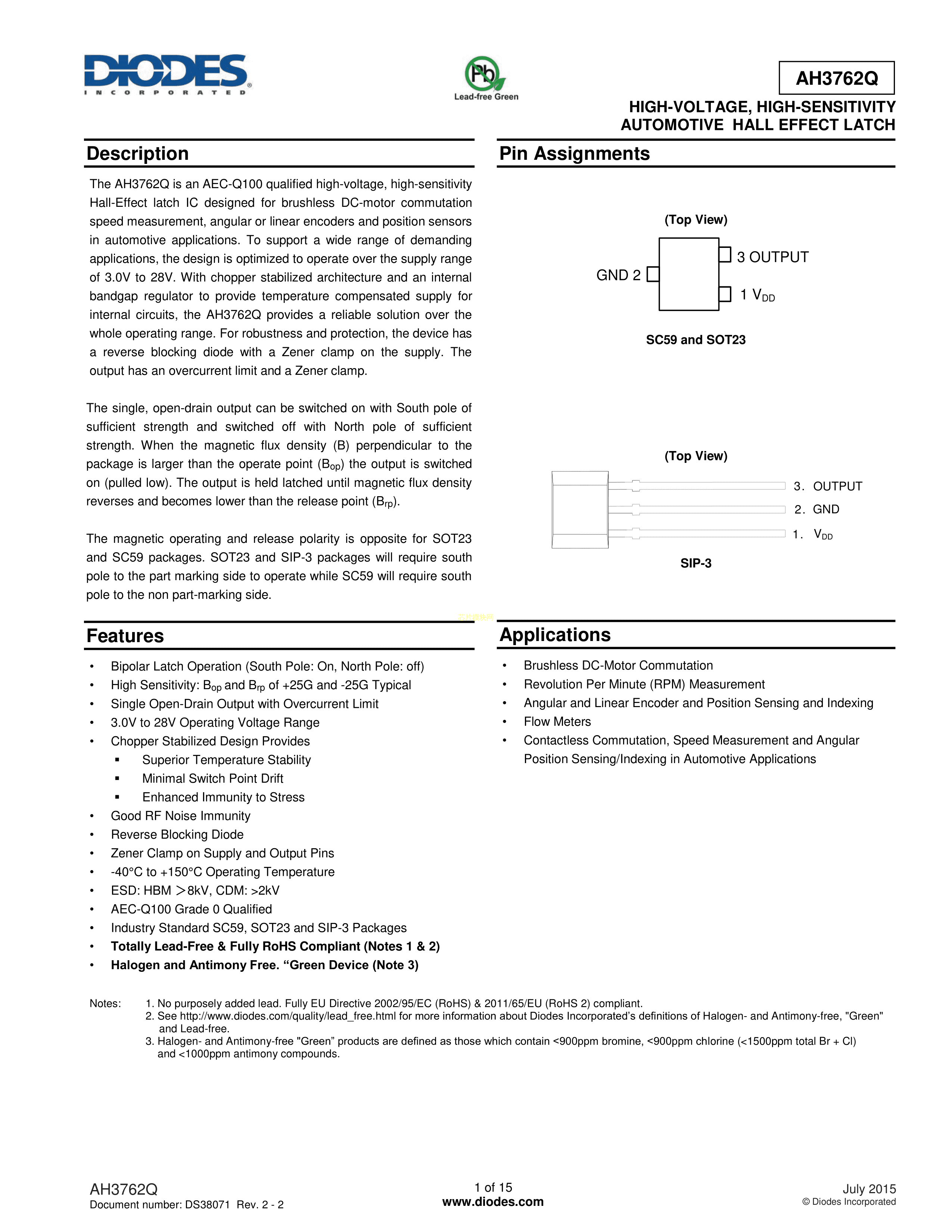 AH3762Q-P-B数据手册SIP-3封装DIODES(美台)PDF规格书,中英文下载