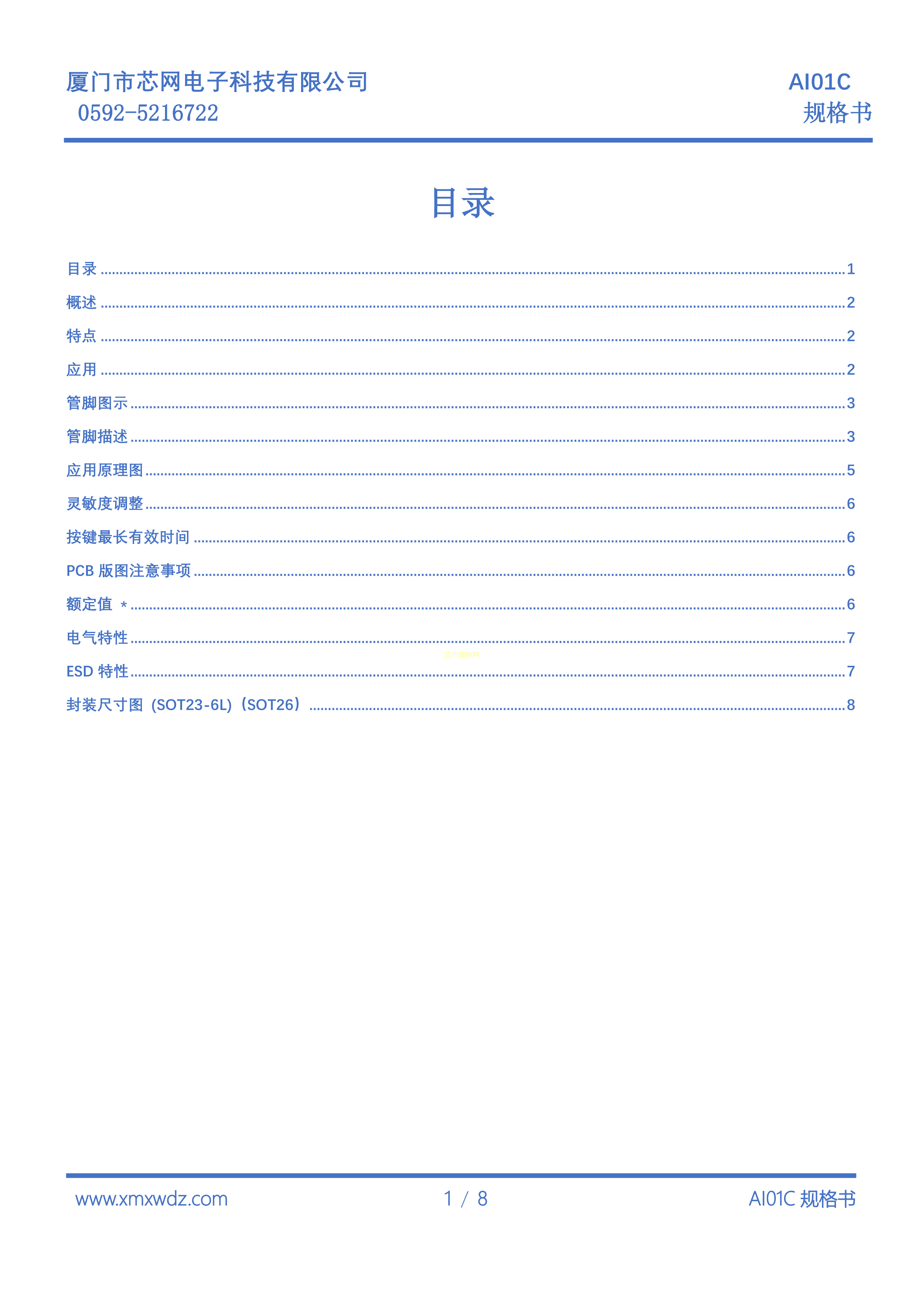 AI01C数据手册SOT23-6L封装Samwing(芯网)PDF规格书,中英文下载