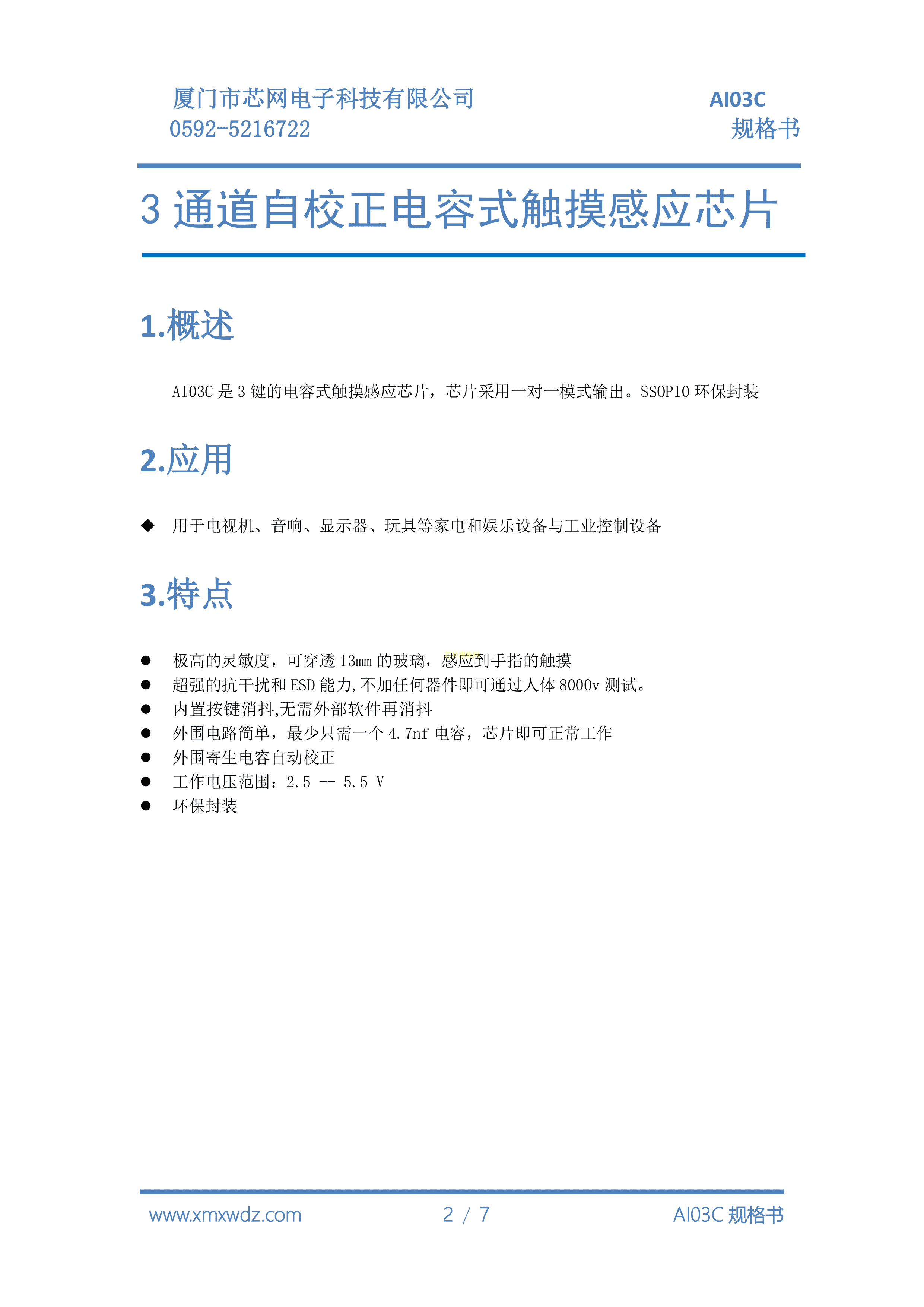 AI03Cssop10数据手册SSOP-10封装Samwing(芯网)PDF规格书,中英文下载