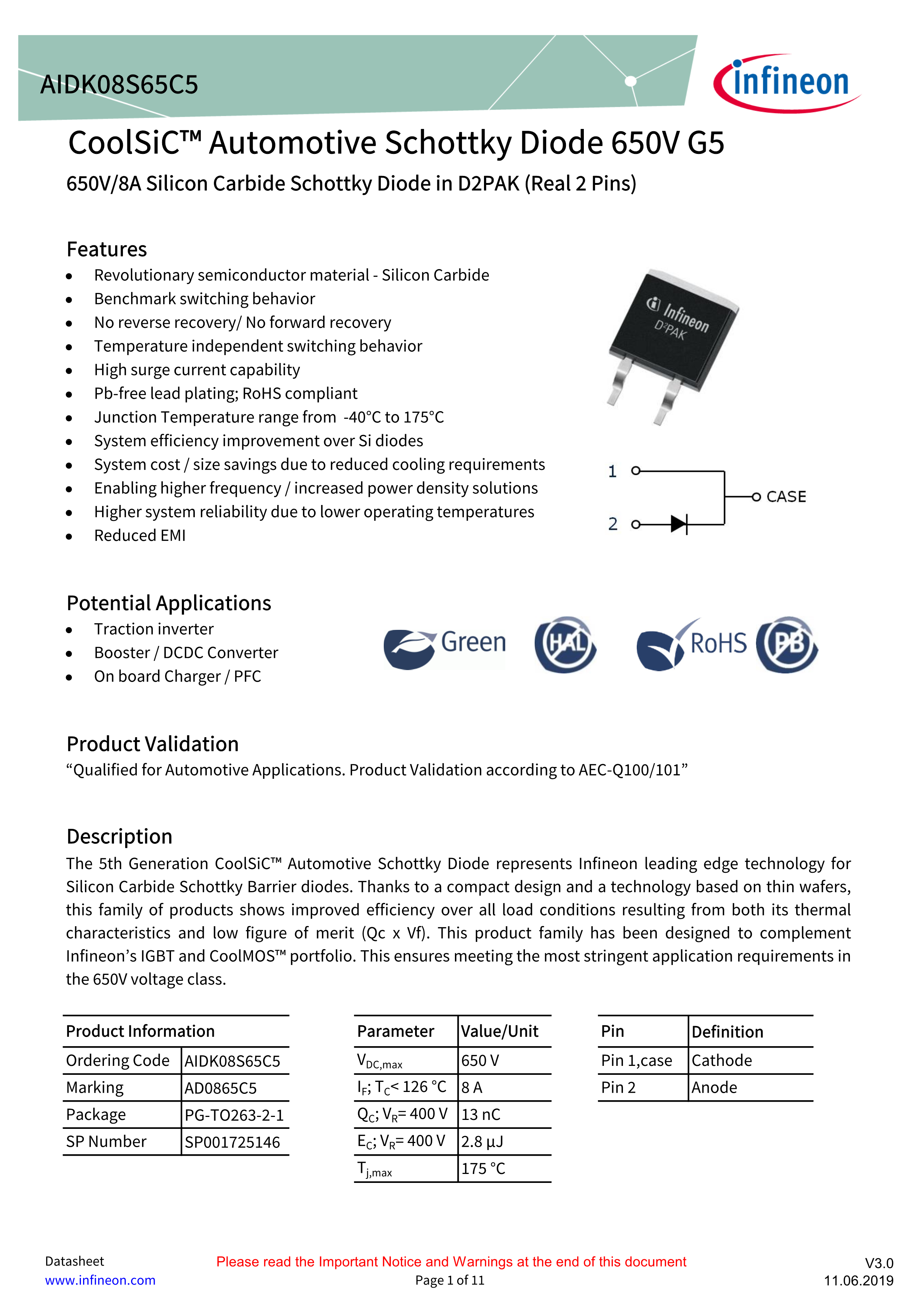 AIDK08S65C5数据手册PG-TO263-2-1封装Infineon(英飞凌)PDF规格书,中