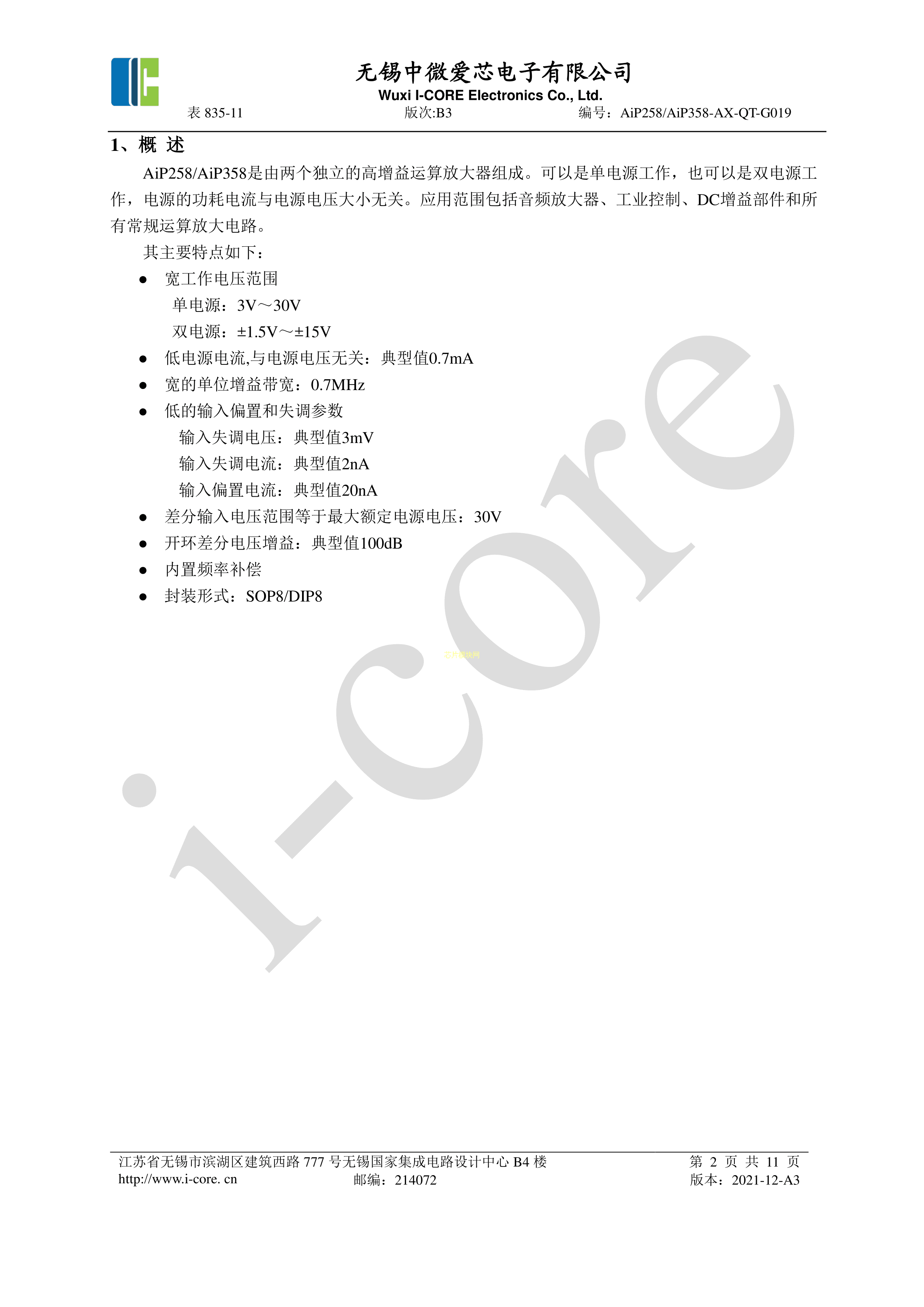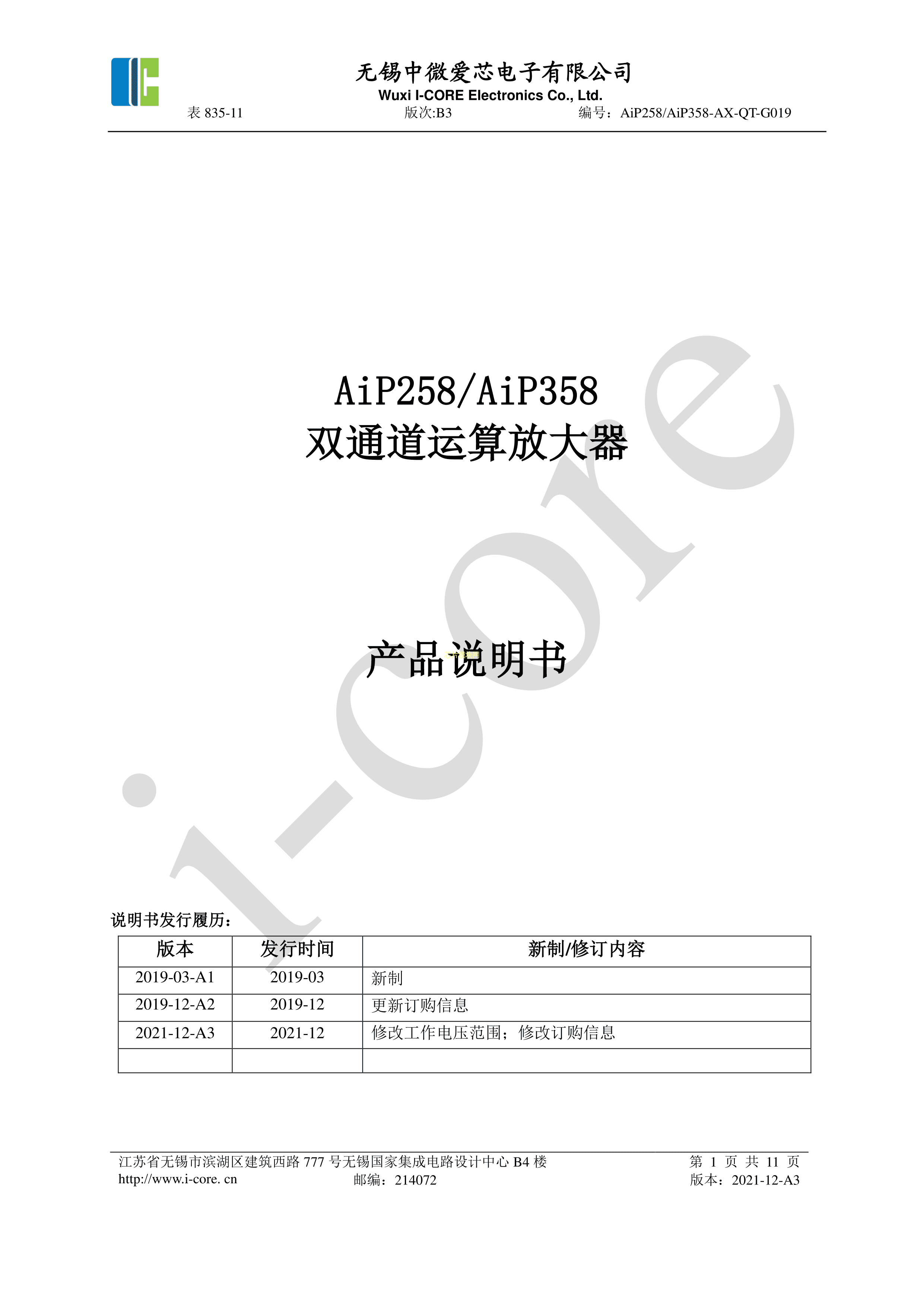 AIP358DA8.TB数据手册DIP-8封装I-CORE(中微爱芯)PDF规格书,中英文下载