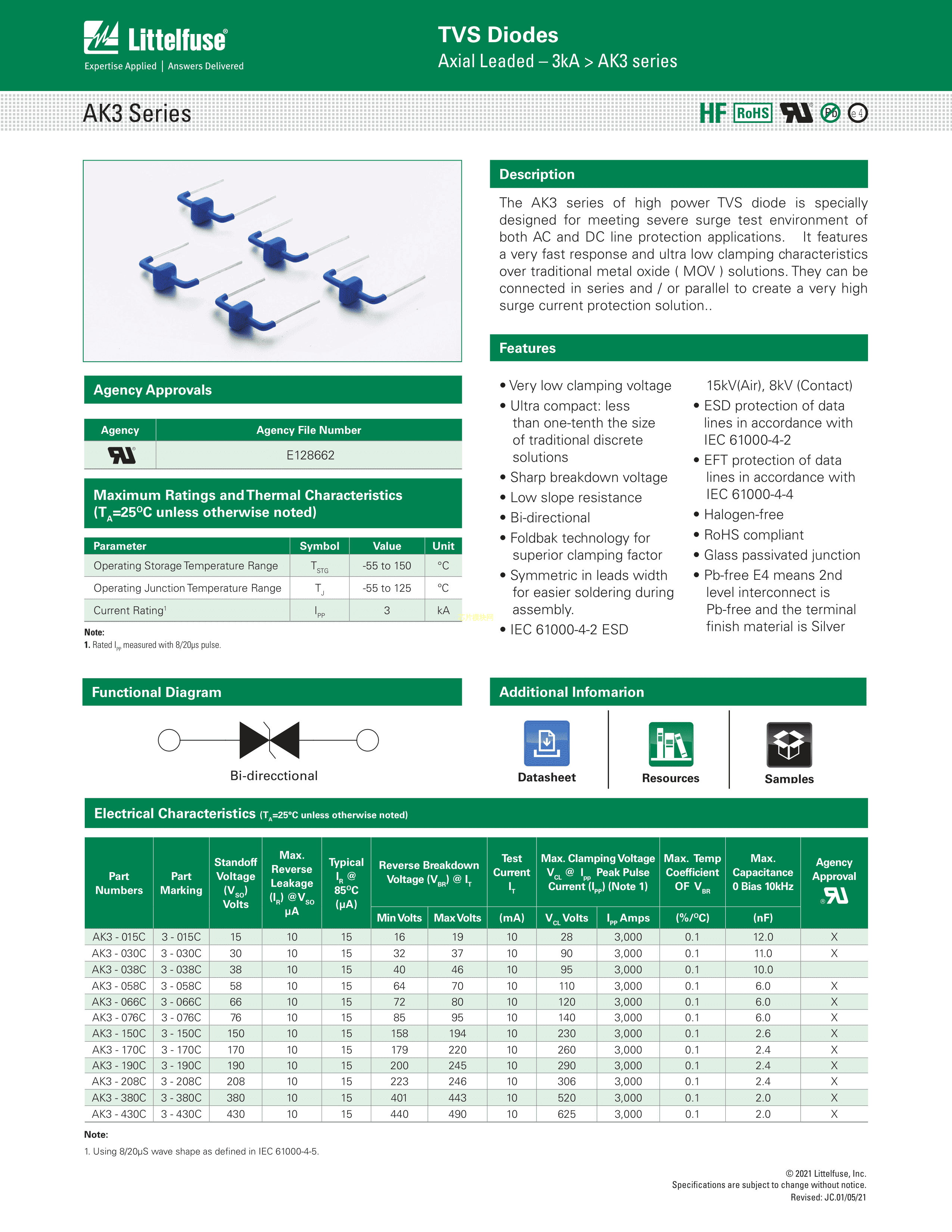 AK3-208C-12数据手册Axial封装Littelfuse(美国力特)PDF规格书,中英文下载