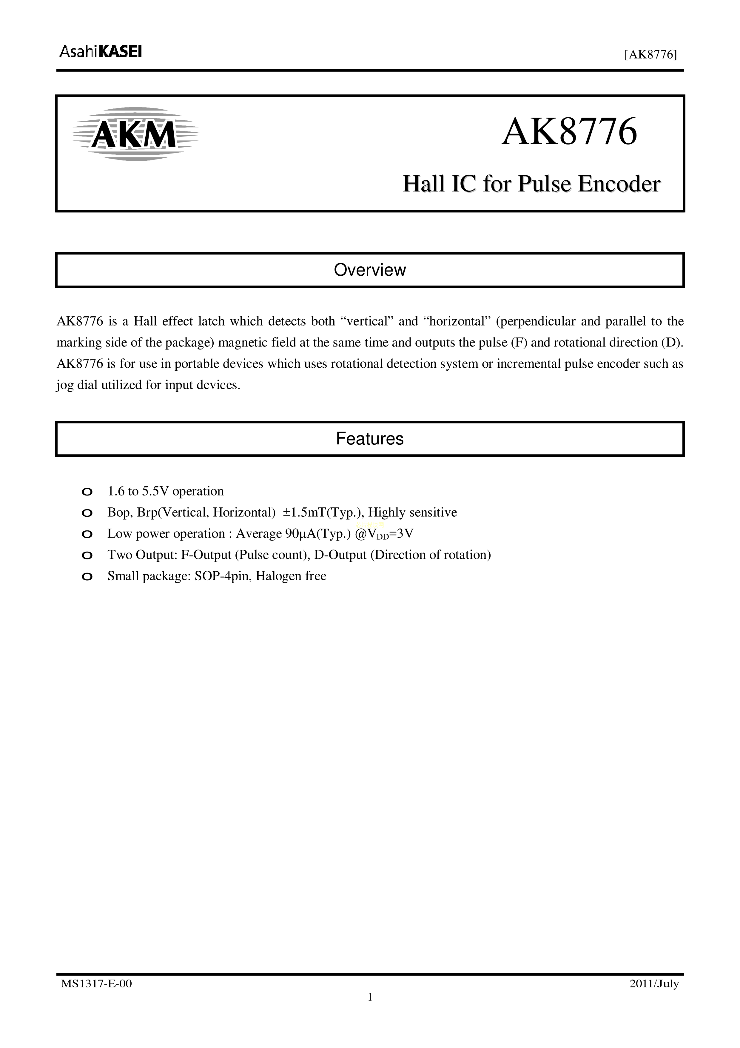 AK8776数据手册SOP-4封装AKMPDF规格书,中英文下载