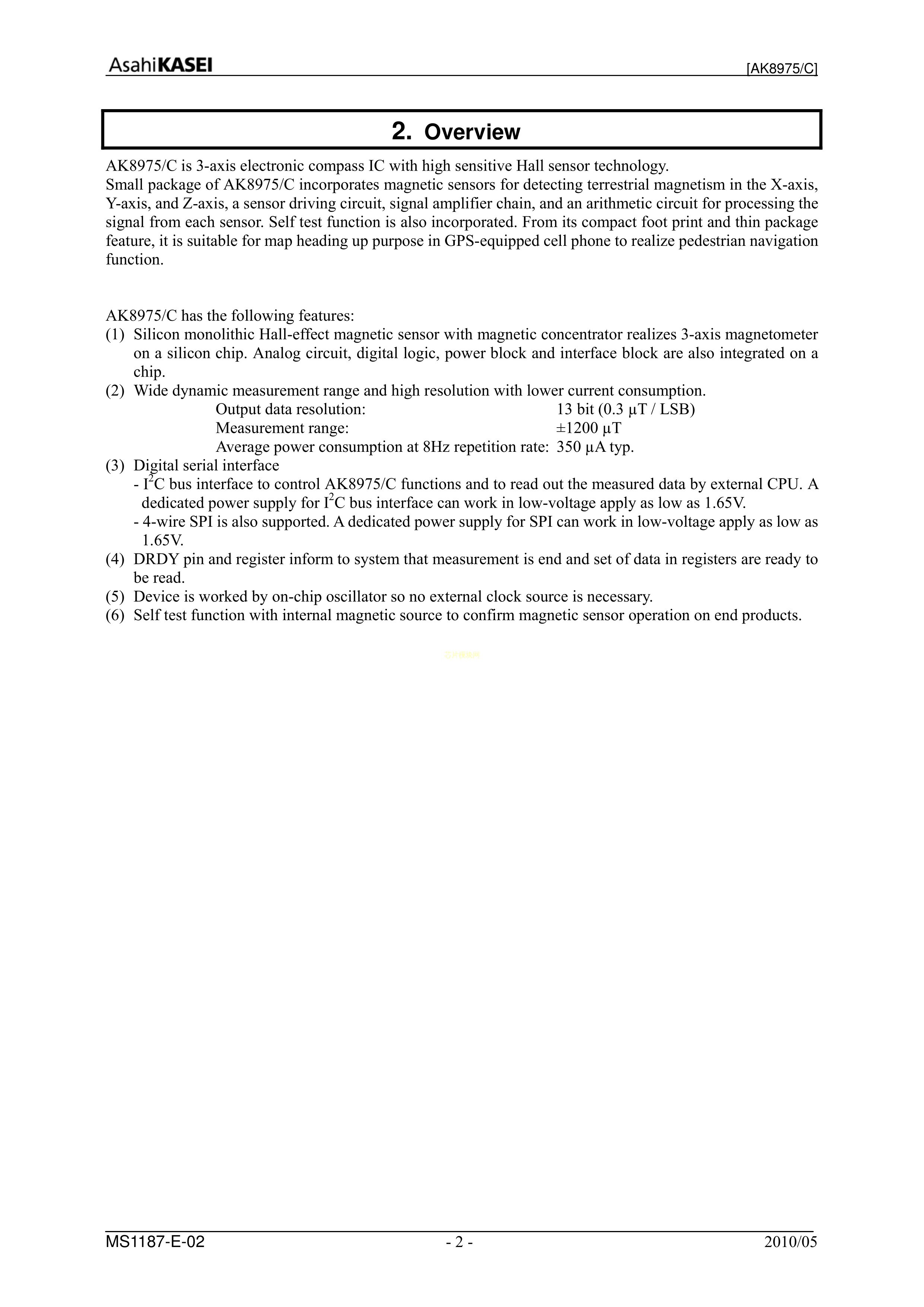 AK8975C数据手册BGA-14封装AKMPDF规格书,中英文下载