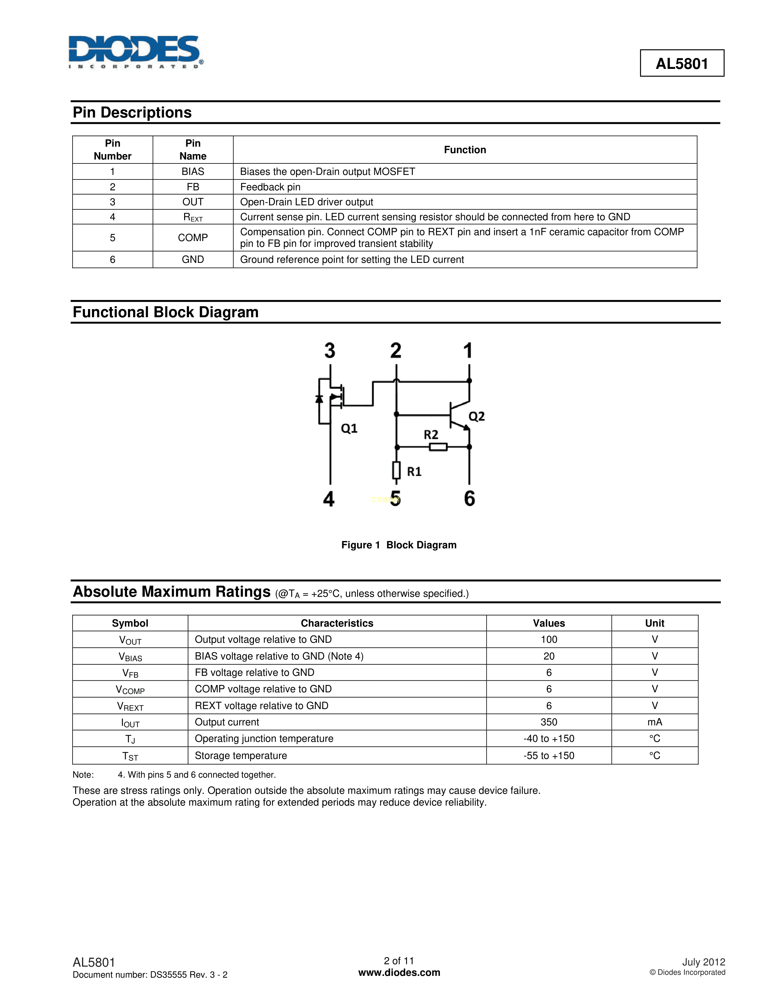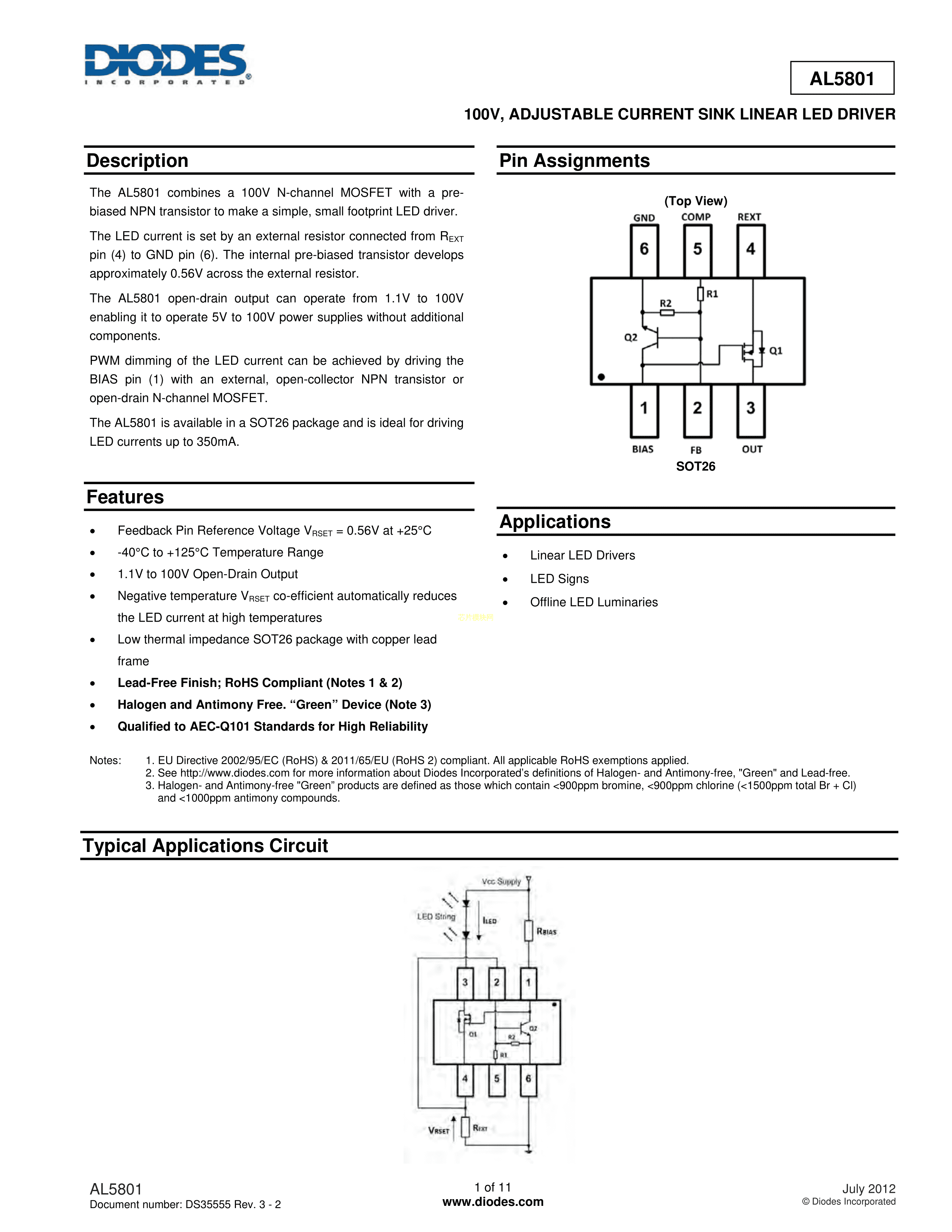 AL5801W6-7数据手册SOT-26封装DIODES(美台)PDF规格书,中英文下载