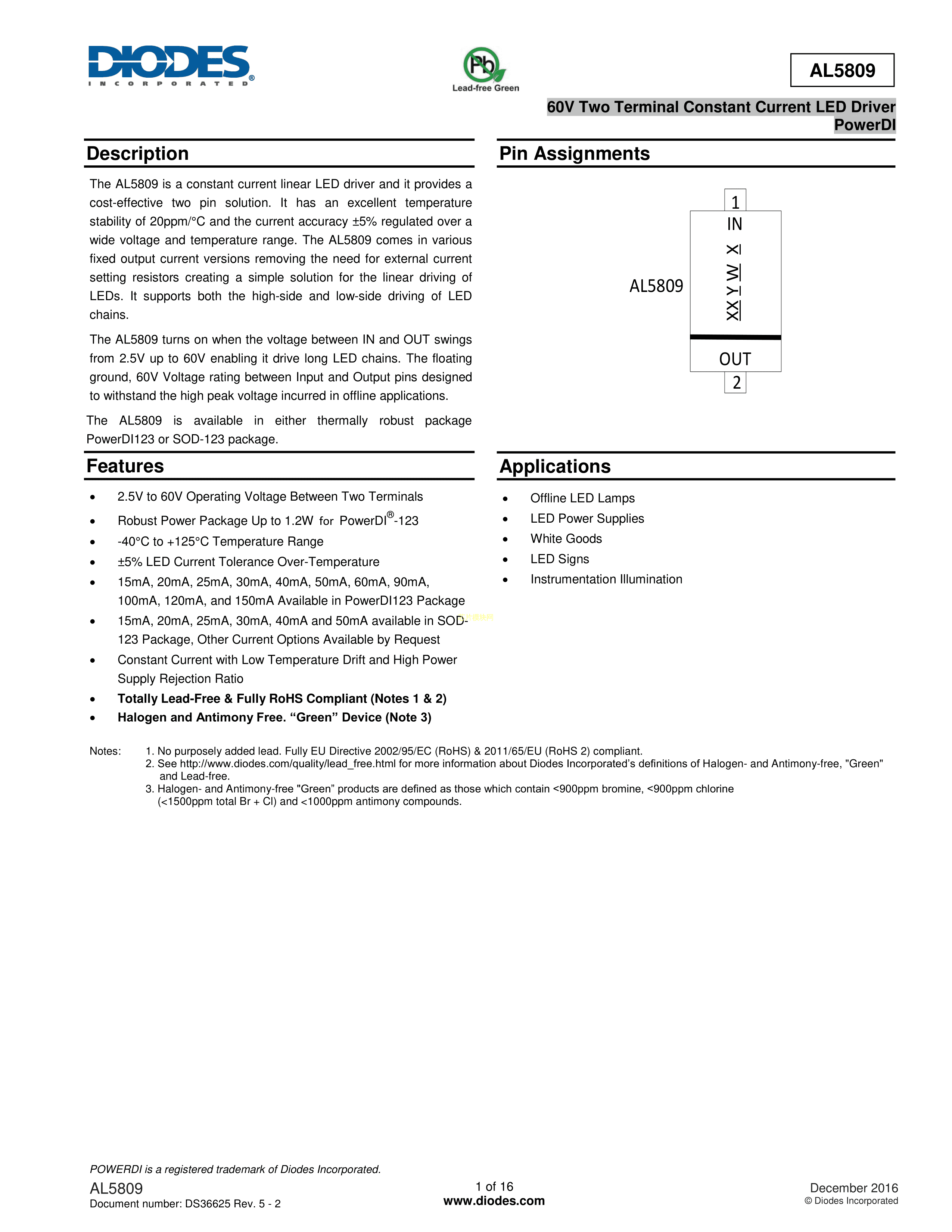 AL5809-20S1-7数据手册SOD-123封装DIODES(美台)PDF规格书,中英文下载