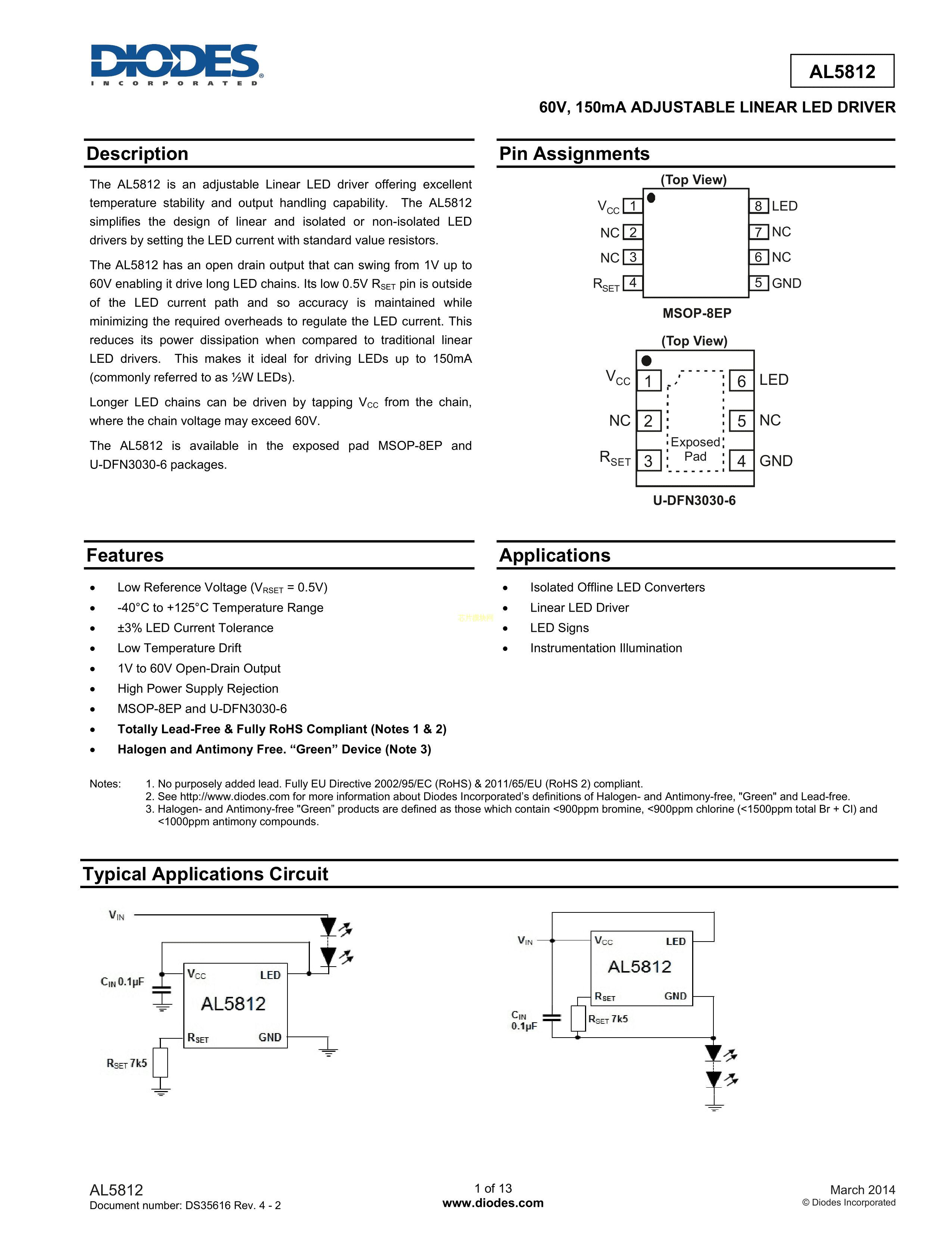 AL5812FF-7数据手册U-DFN3030-6封装DIODES(美台)PDF规格书,中英文下载