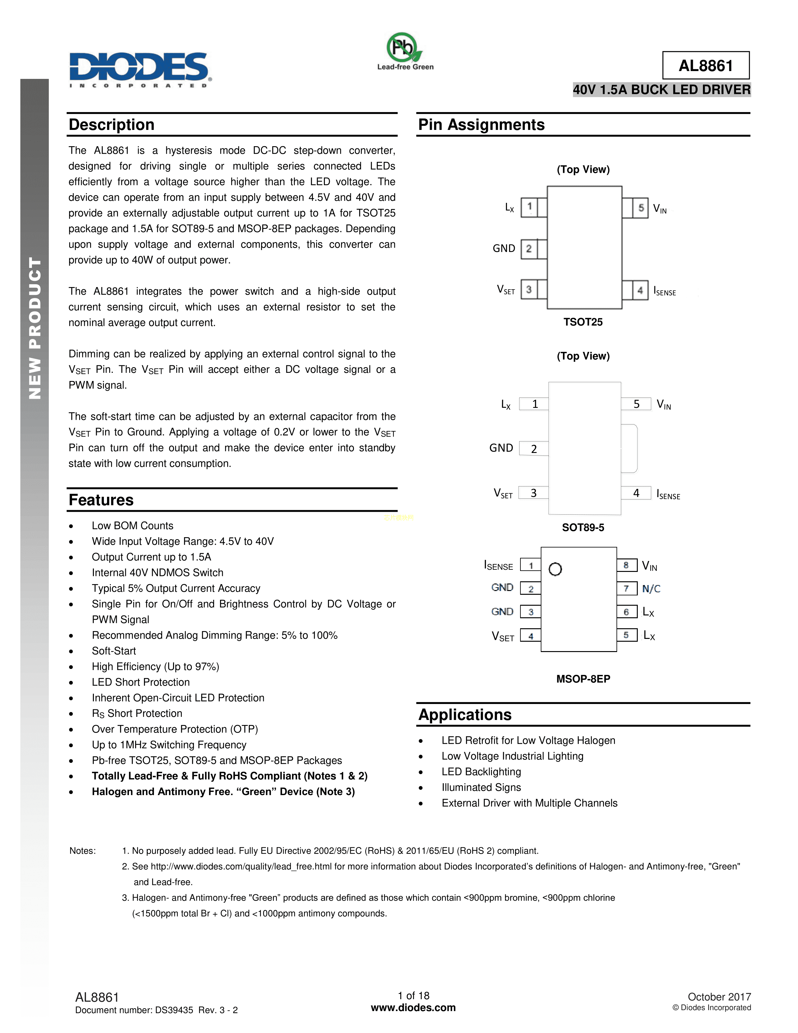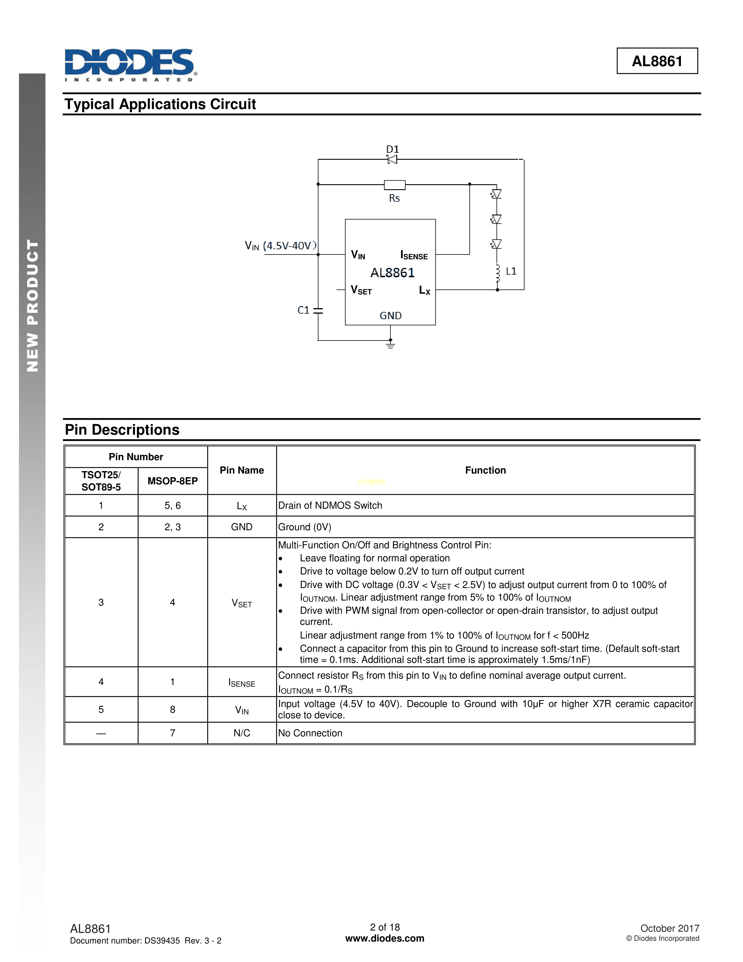 AL8861MP-13数据手册MSOP-8EP封装DIODES(美台)PDF规格书,中英文下载