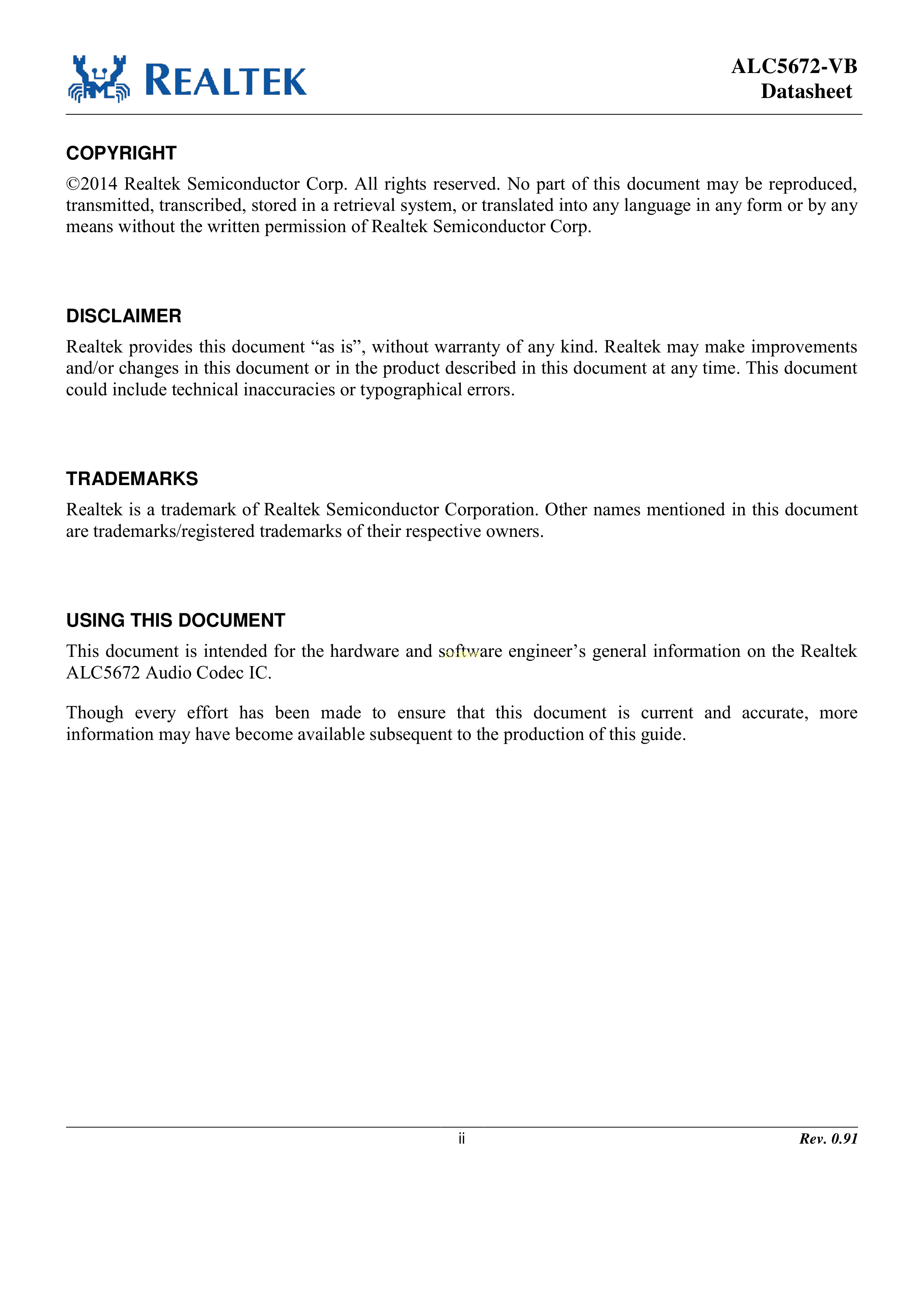 ALC5672-VB-CGT数据手册QFN-48封装REALTEK(瑞昱)PDF规格书,中英文下载