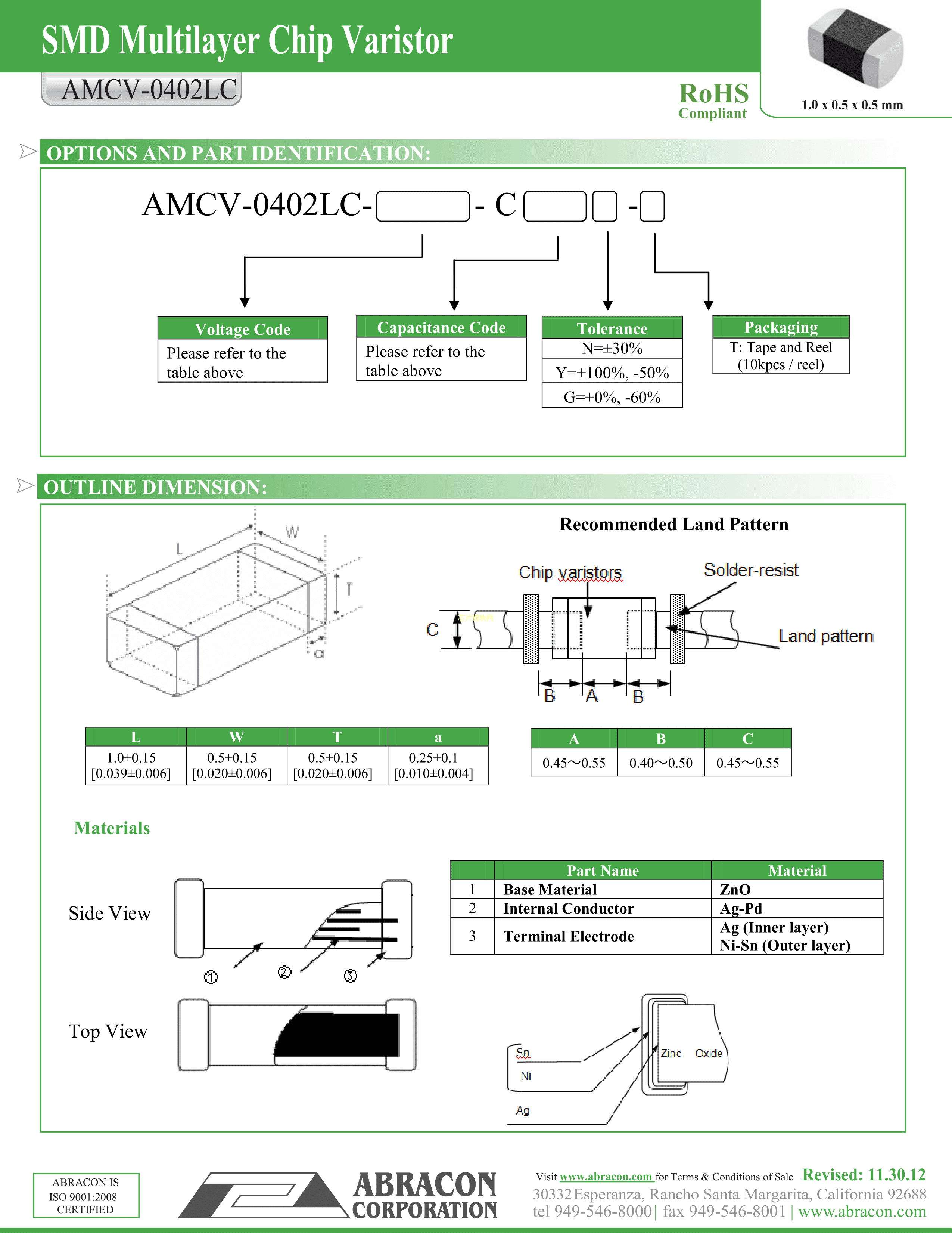AMCV-0402LC-140-C100N-T数据手册0402封装ABRACONPDF规格书,中英文