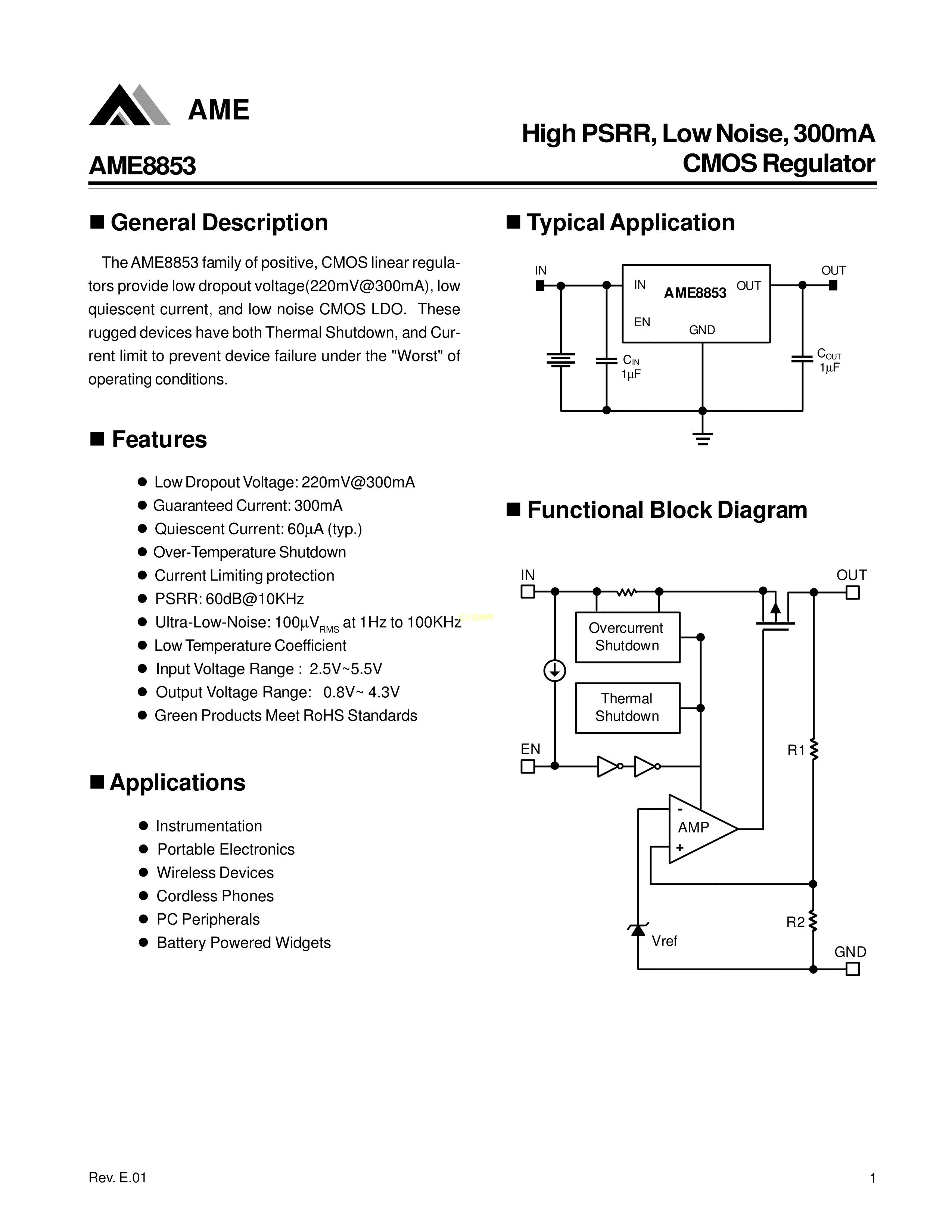 AME8853-AET250数据手册SOT-23(SOT-23-3)封装AME(安茂微)PDF规格书