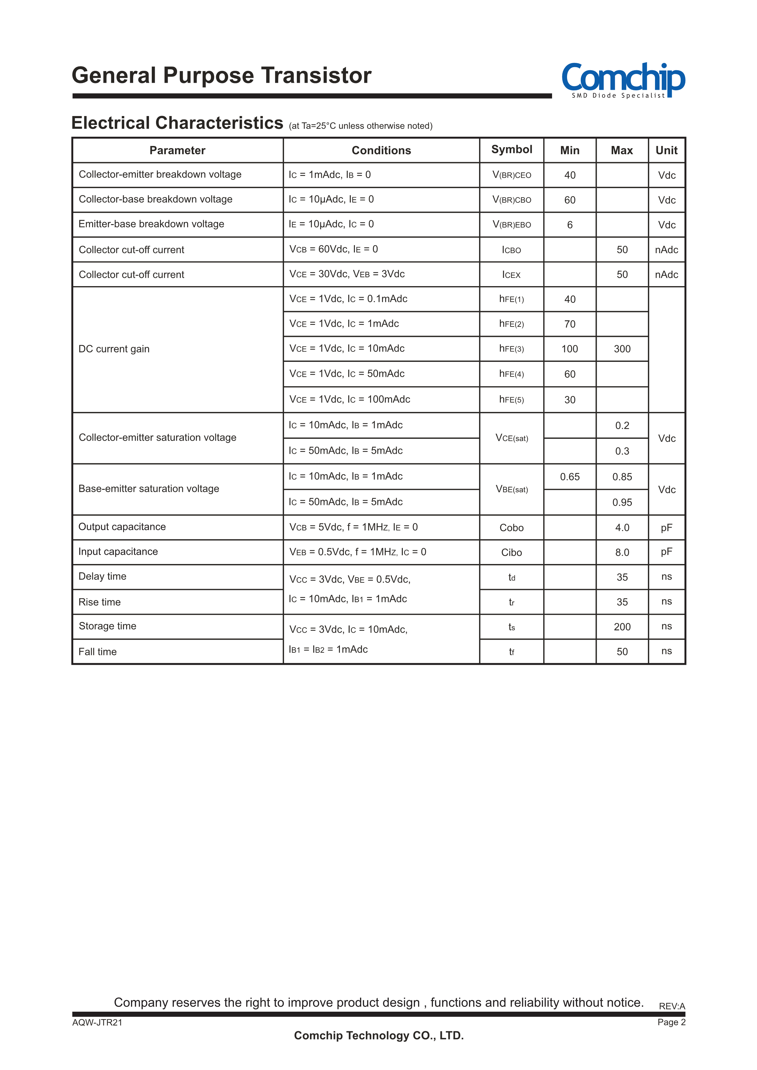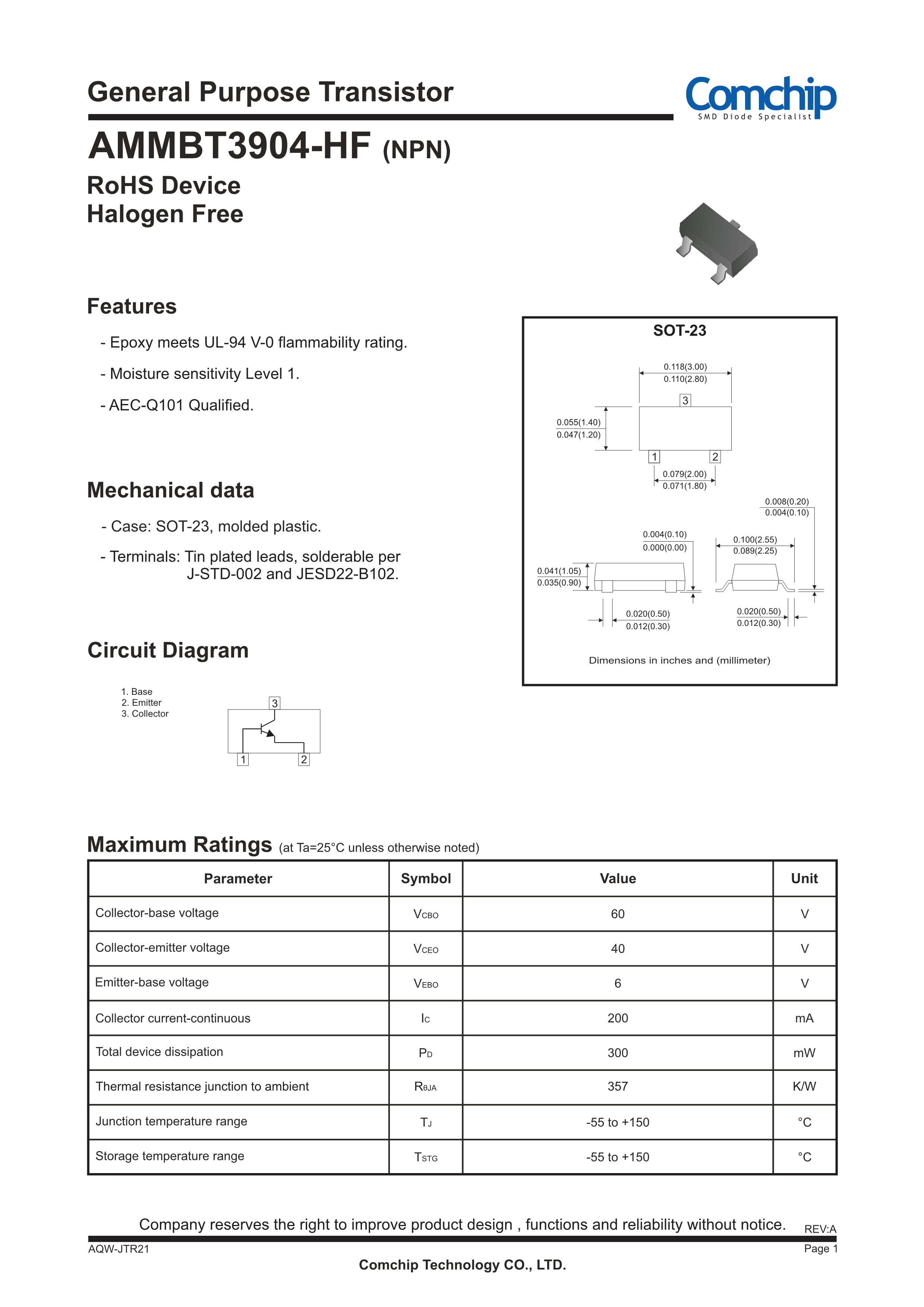 AMMBT3904-HF数据手册SOD-23封装Comchip Technology(典琦)PDF规