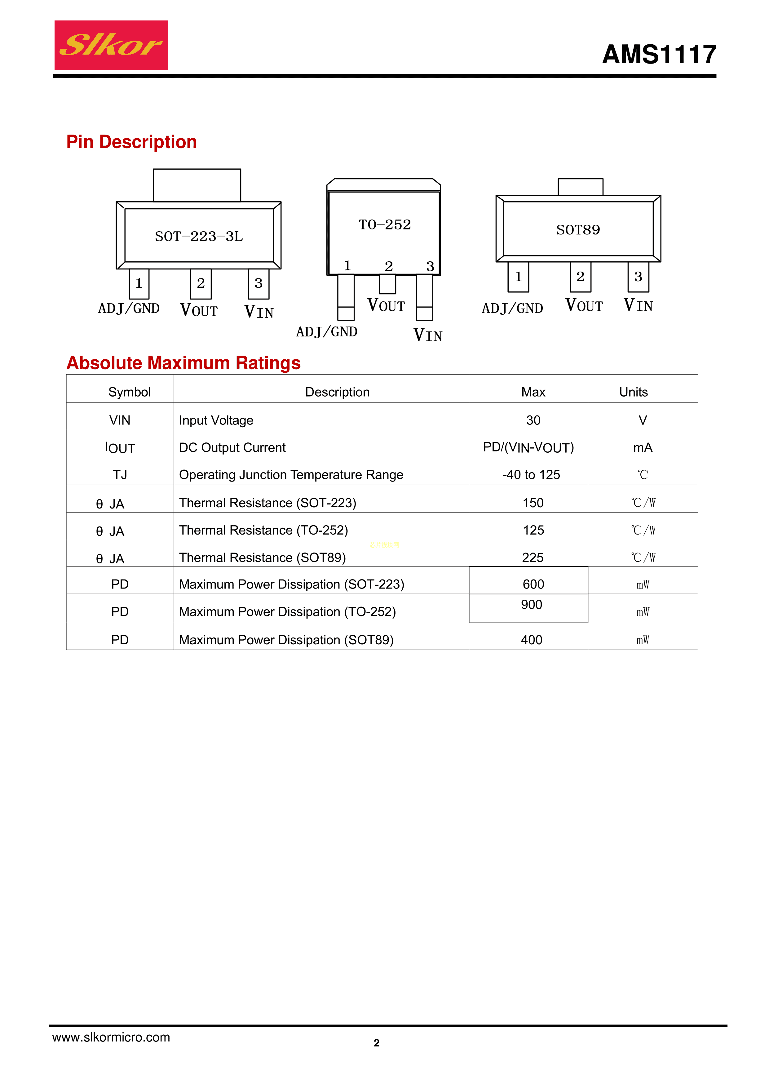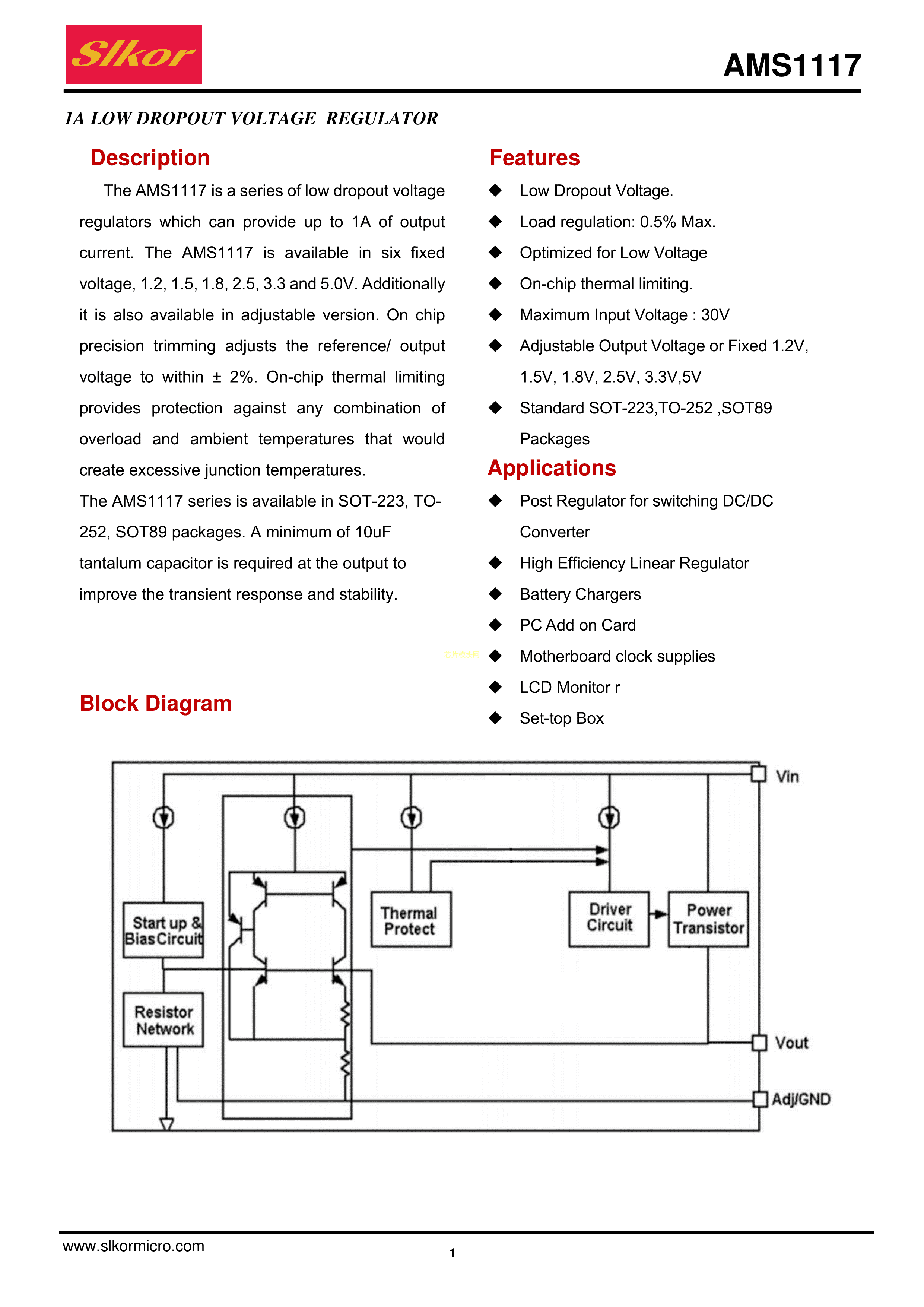 AMS1117-1.8数据手册SOT-89封装Slkor(萨科微)PDF规格书,中英文下载