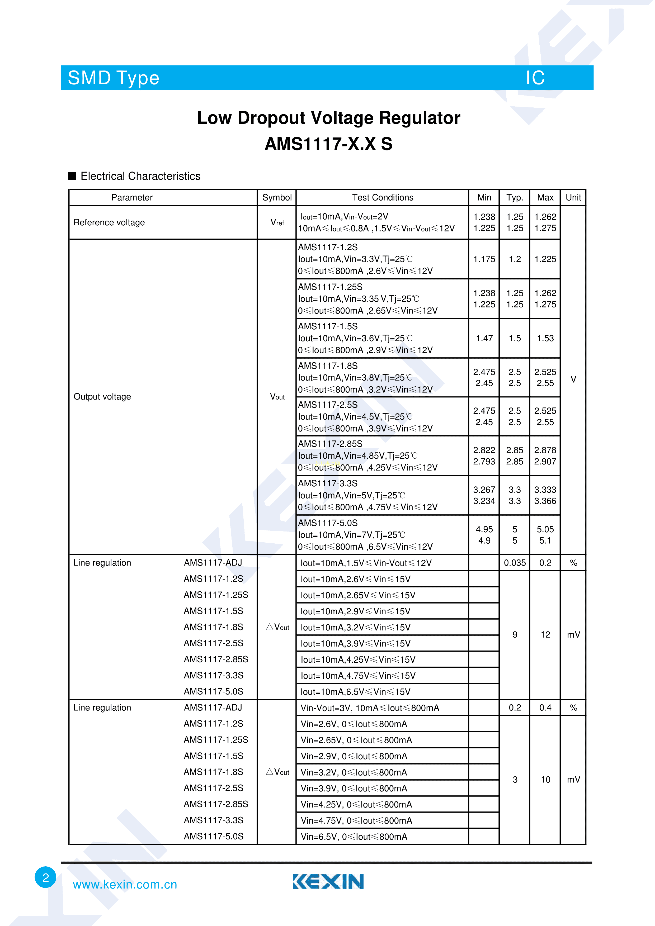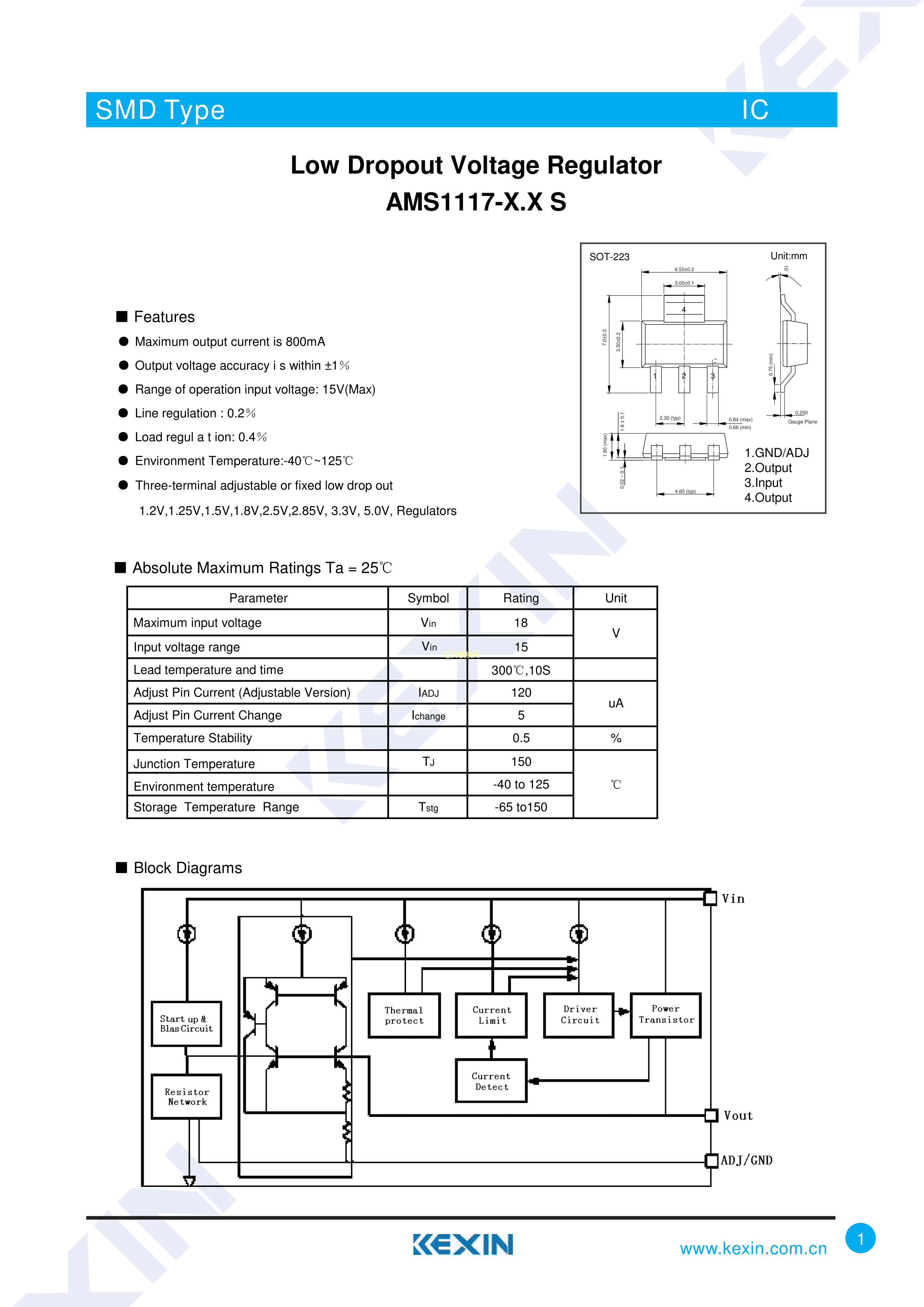 AMS1117-3.3S数据手册SOT-223封装KEXIN(科信)PDF规格书,中英文下载