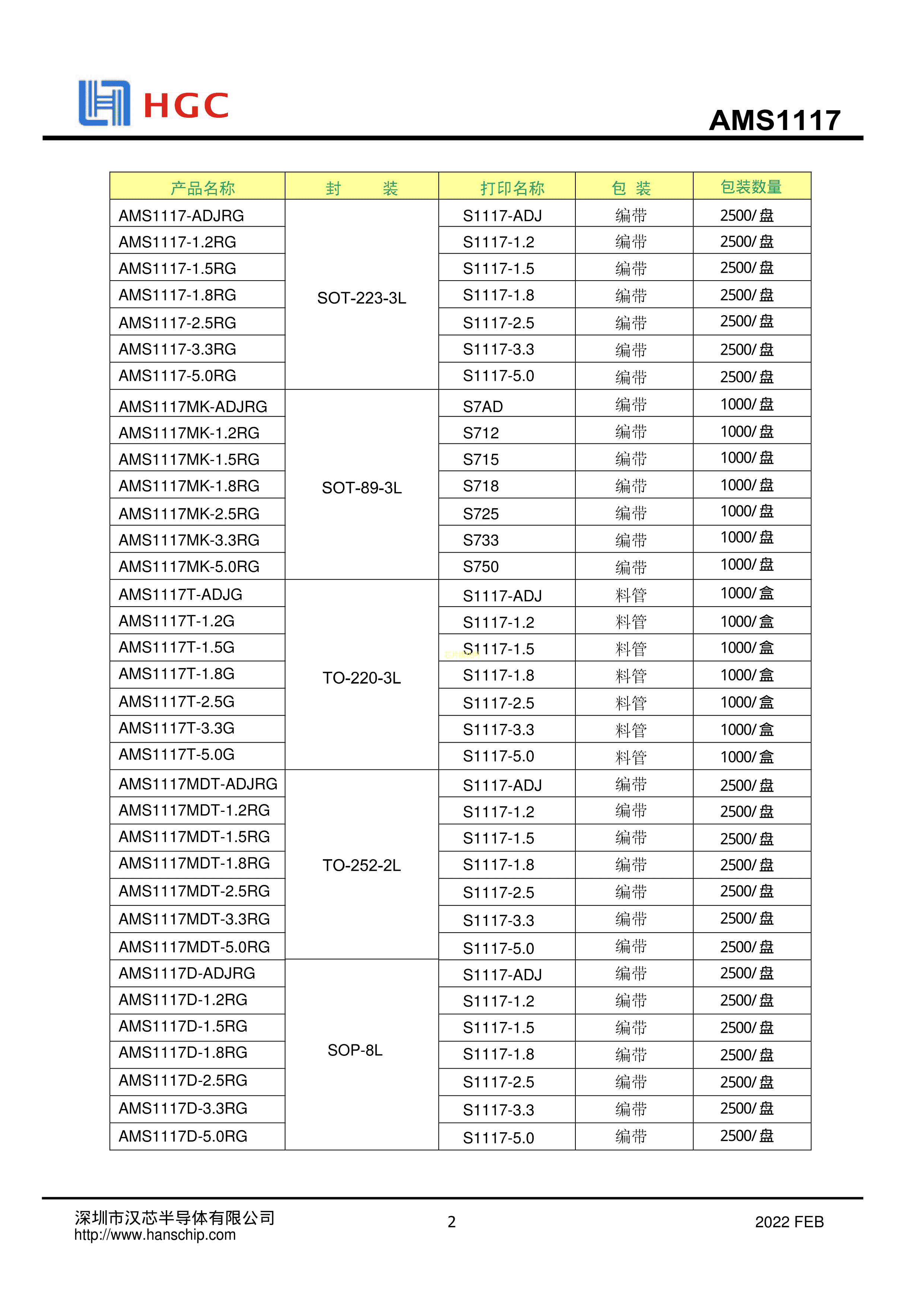 AMS1117DT-5.0RG数据手册TO-263-3封装HGC(深圳汉芯)PDF规格书,中英文下载
