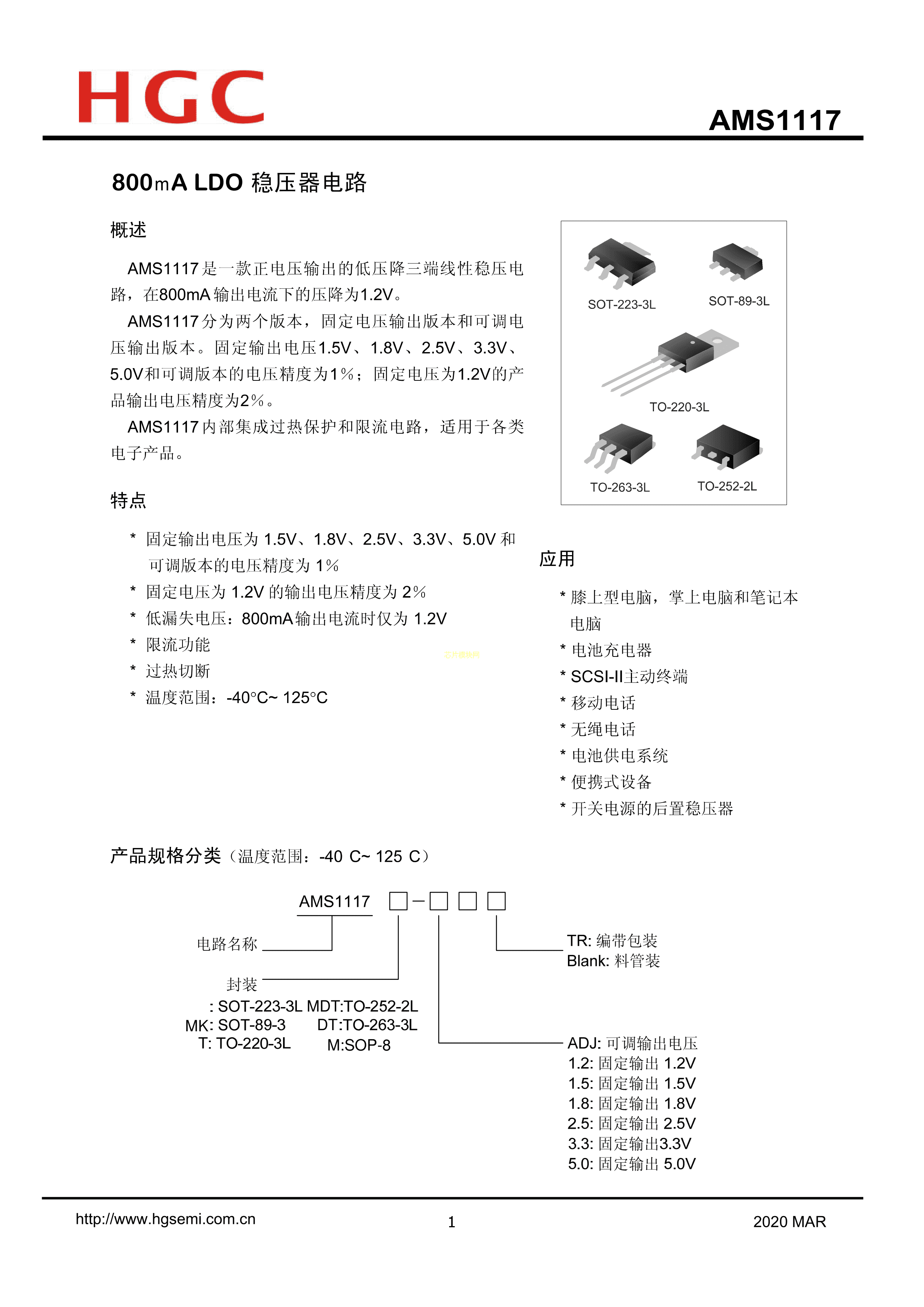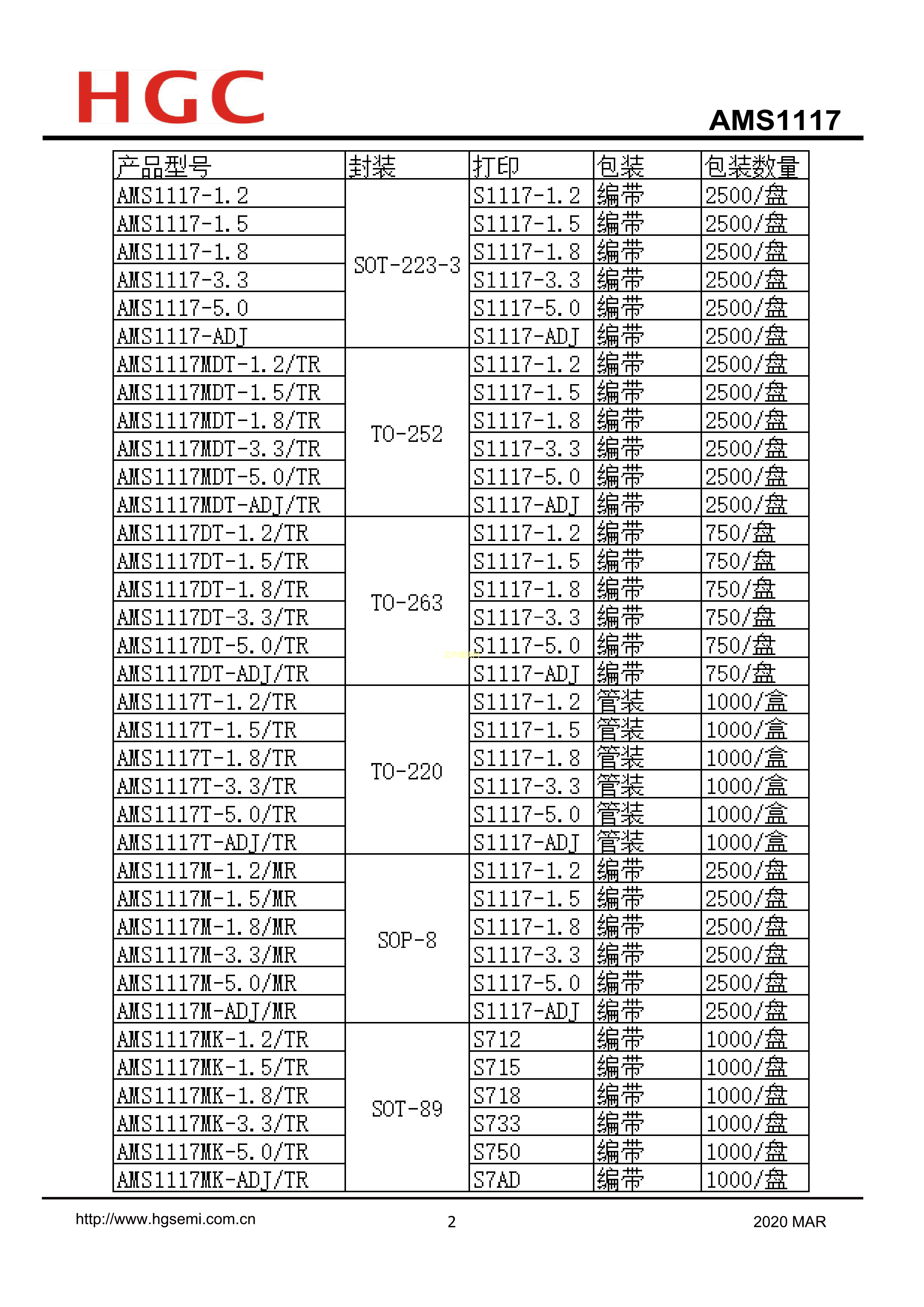 AMS1117M-5.0-TR数据手册SOP-8封装HGC(华冠)PDF规格书,中英文下载