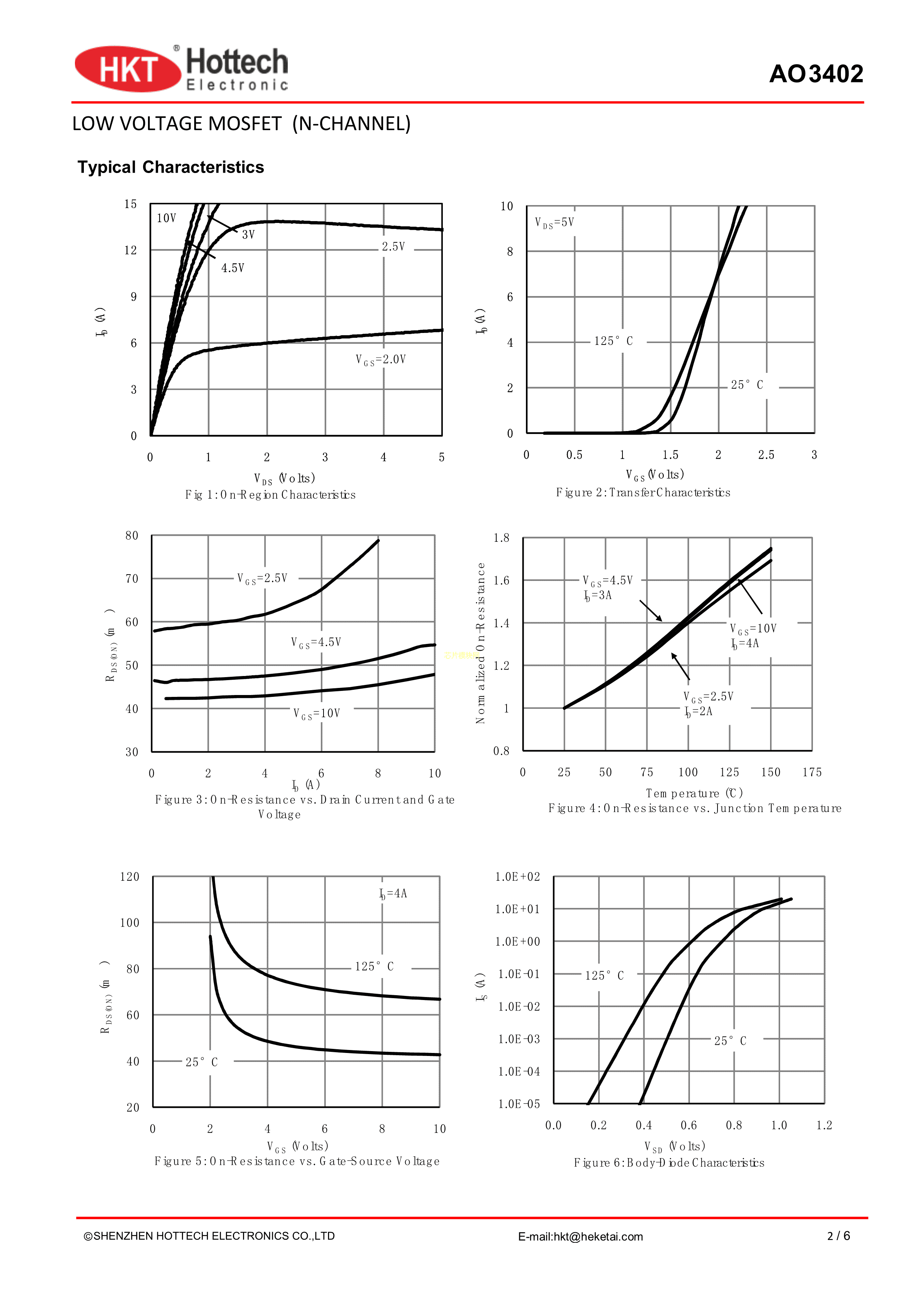 AO3402数据手册SOT-23(SOT-23-3)封装Hottech(合科泰)PDF规格书,中英文