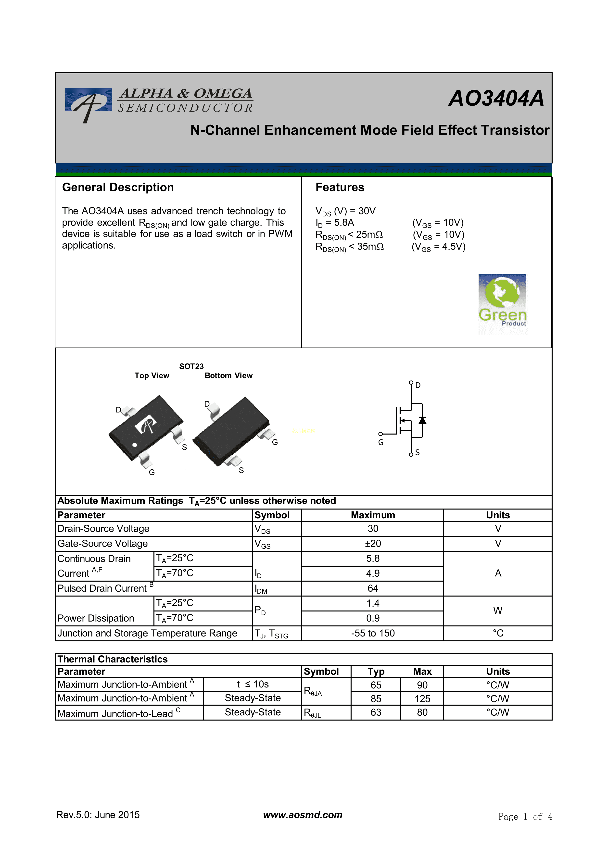 AO3404APDF规格书,中英文下载