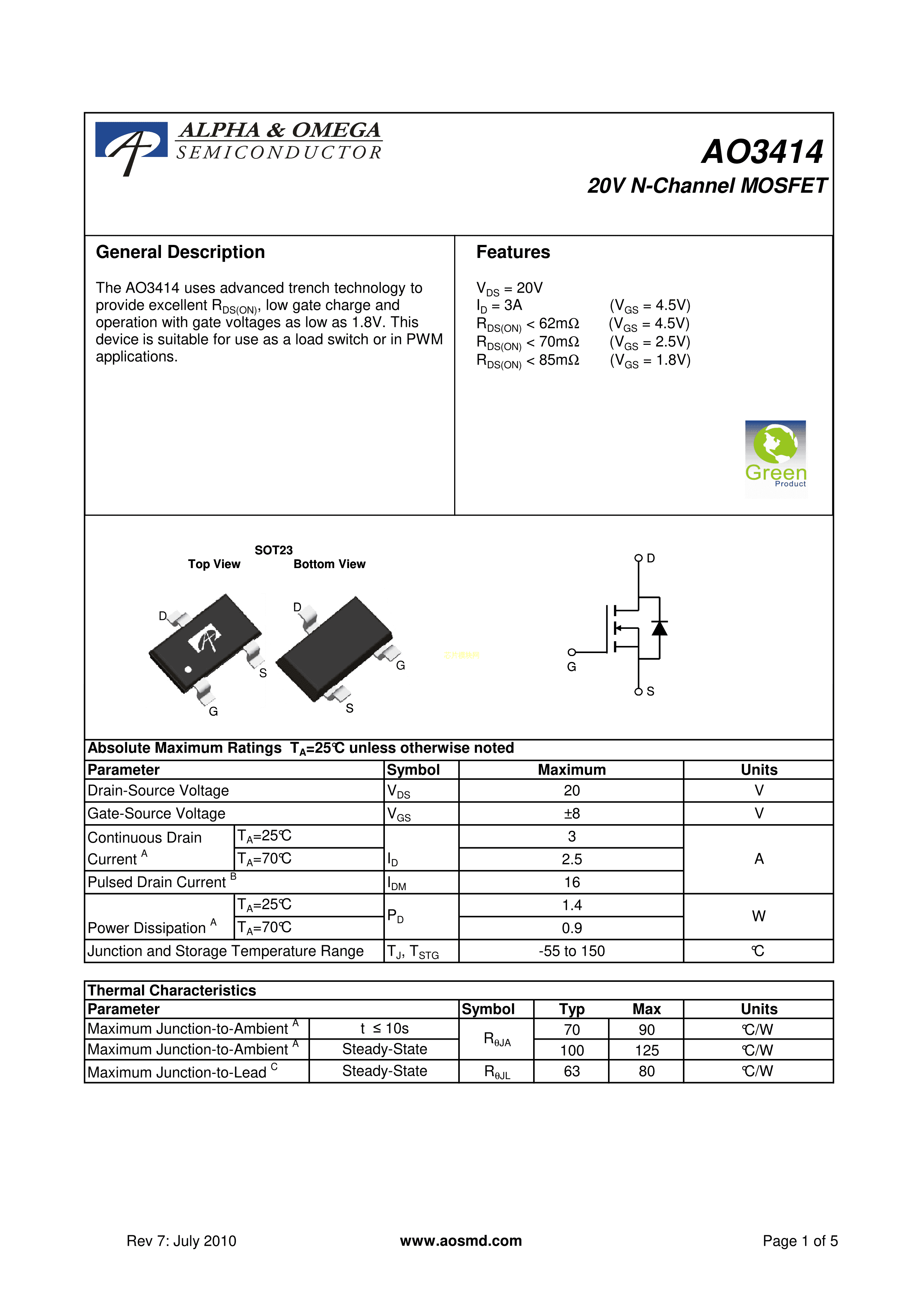 AO3414PDF规格书,中英文下载