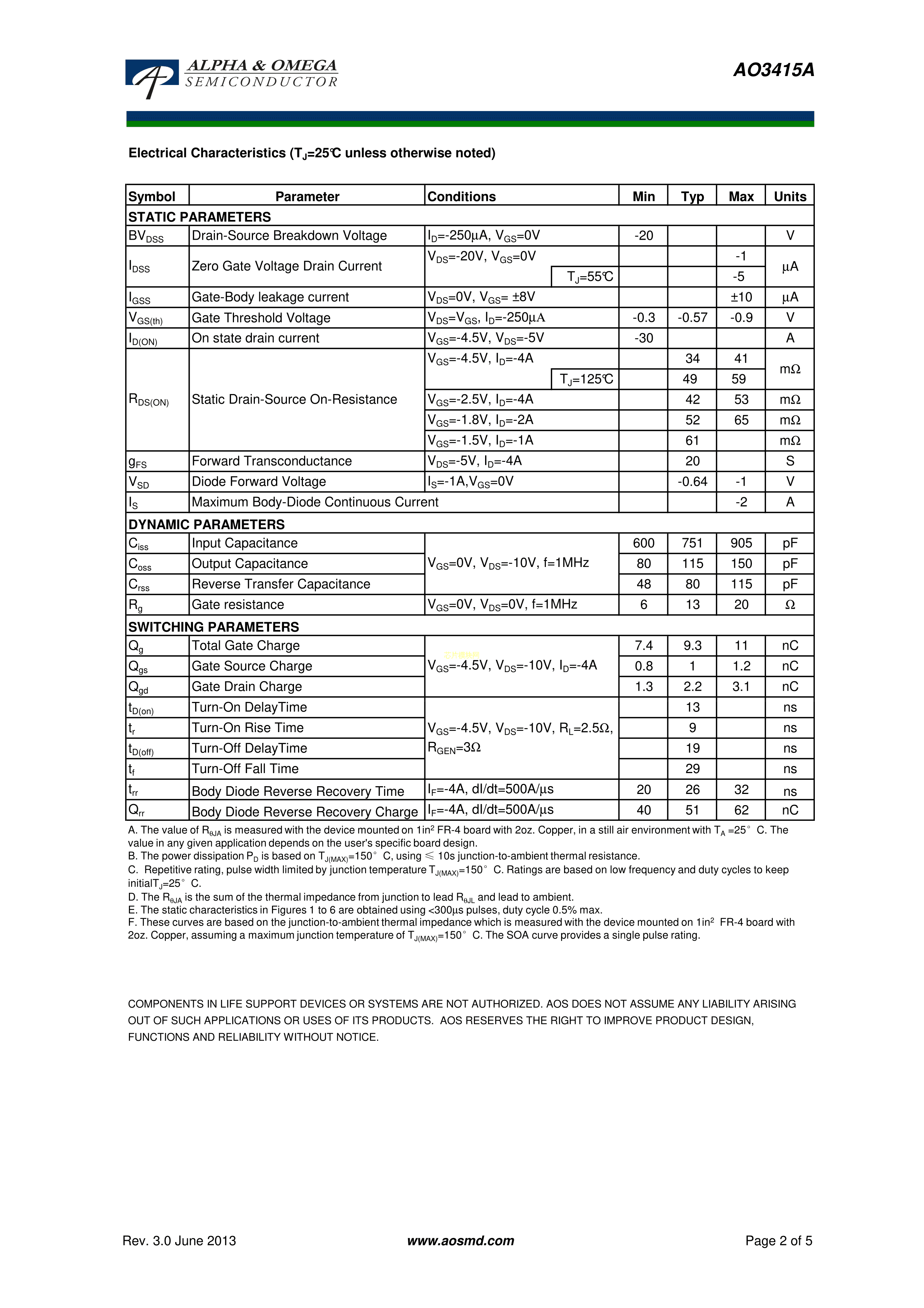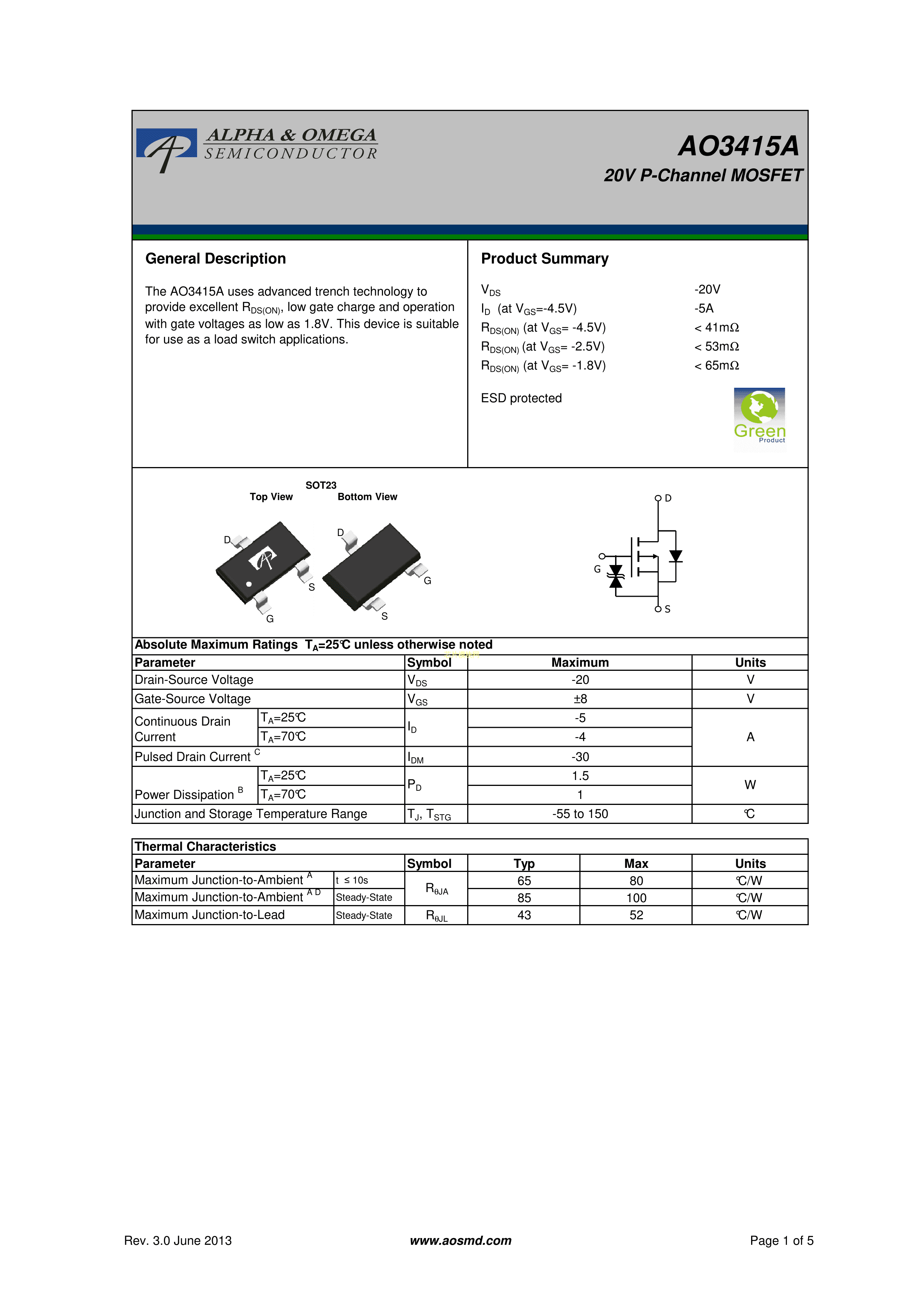 AO3415APDF规格书,中英文下载