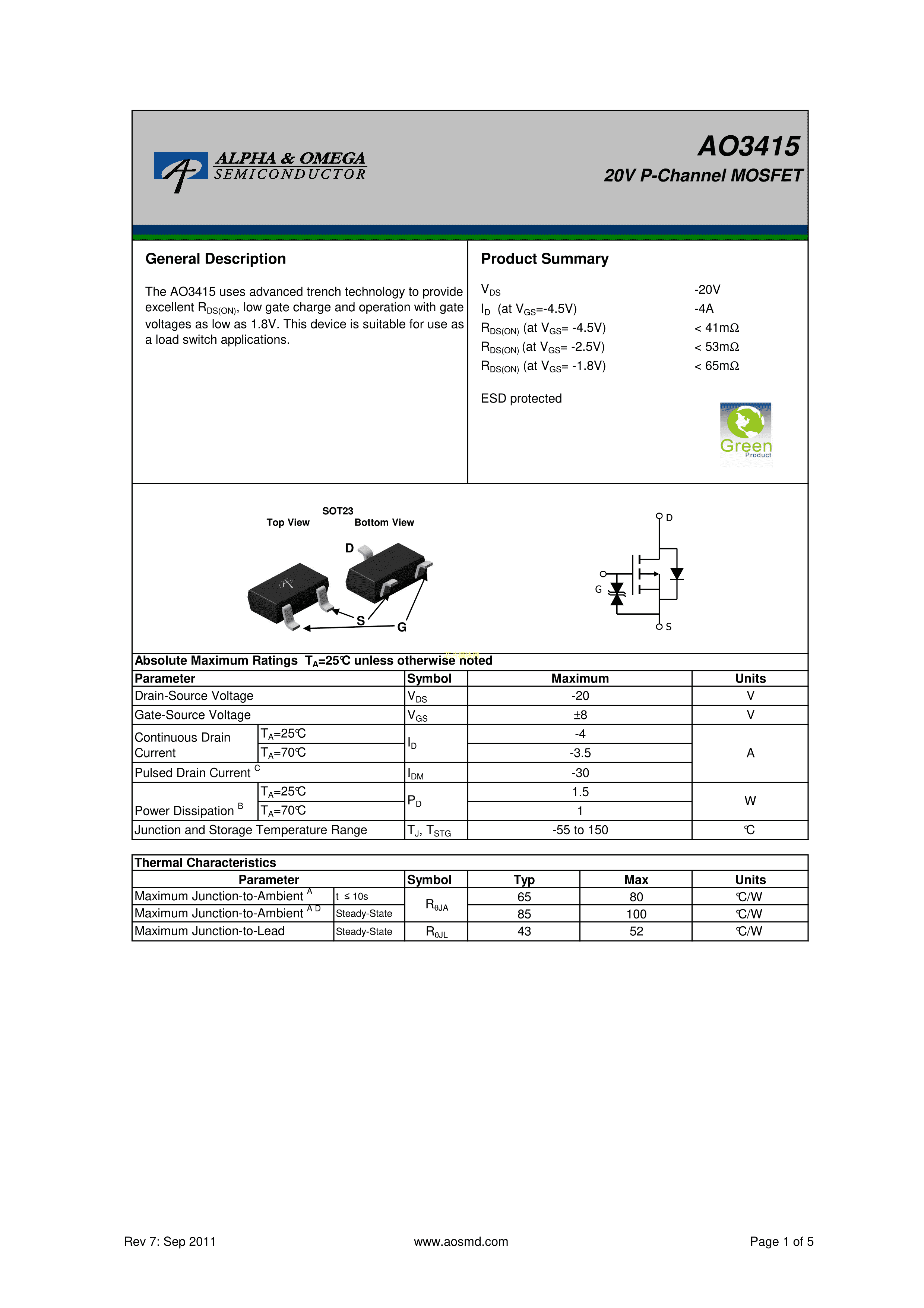 AO3415pdfPDF规格书,中英文下载