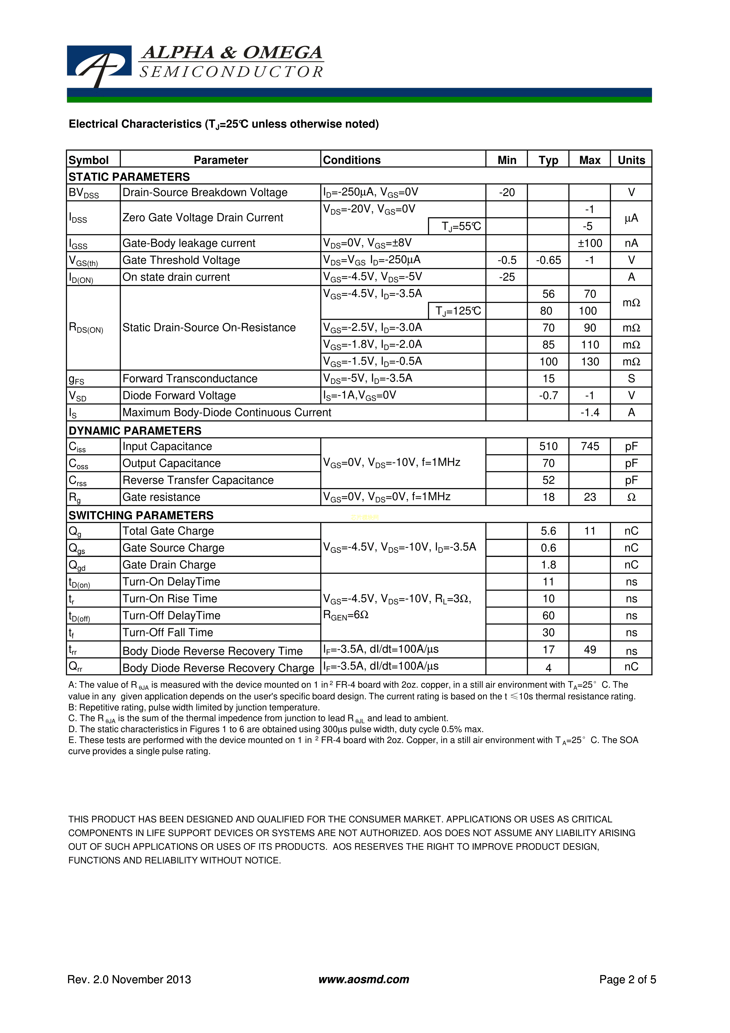 AO3435数据手册SOT-23(SOT-23-3)封装AOSPDF规格书,中英文下载