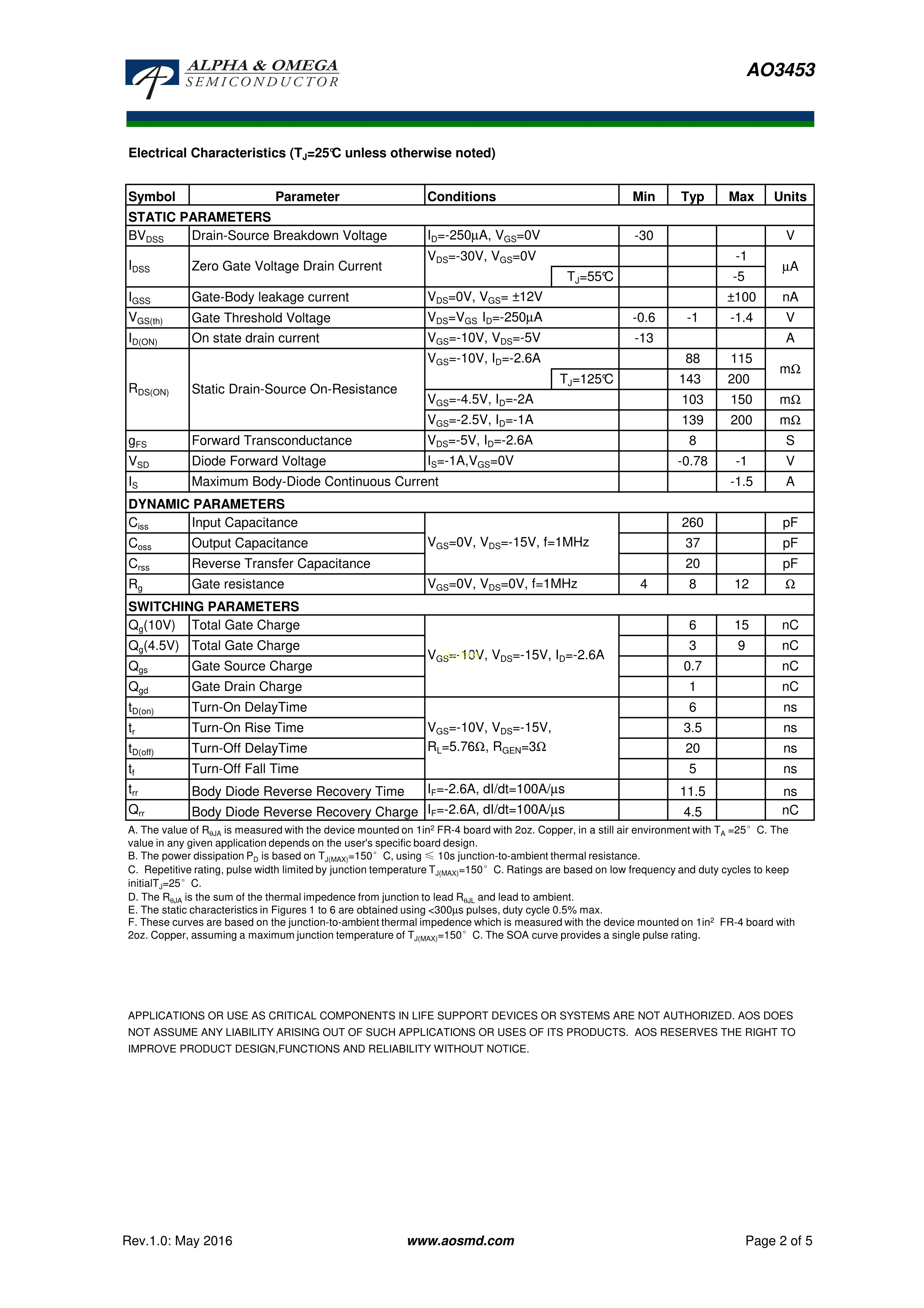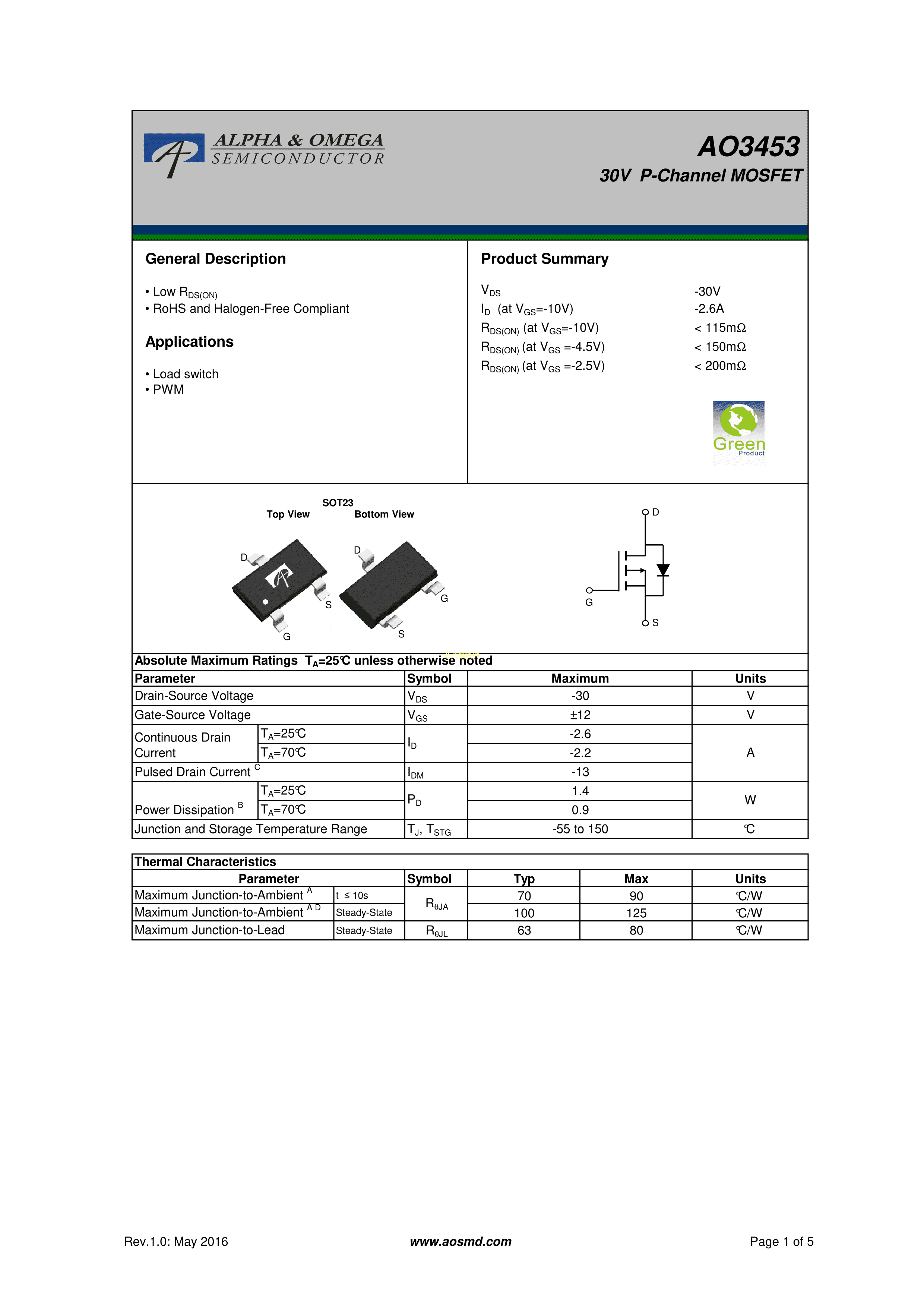 AO3453PDF规格书,中英文下载