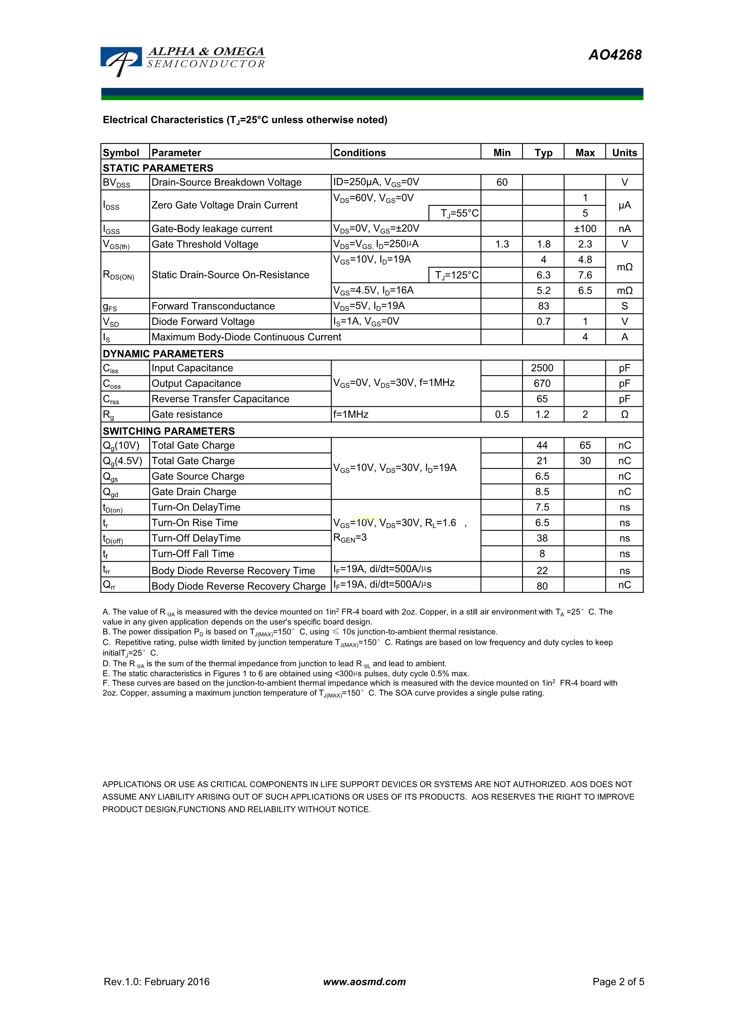 AO4268数据手册SOIC-8封装AOSPDF规格书,中英文下载