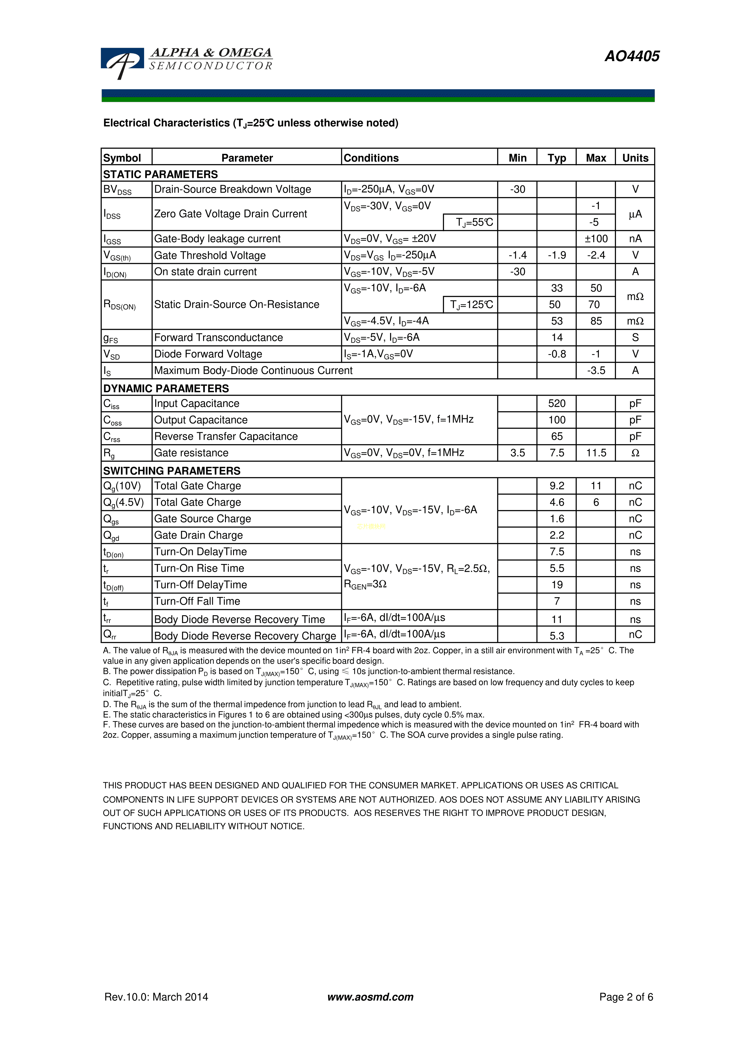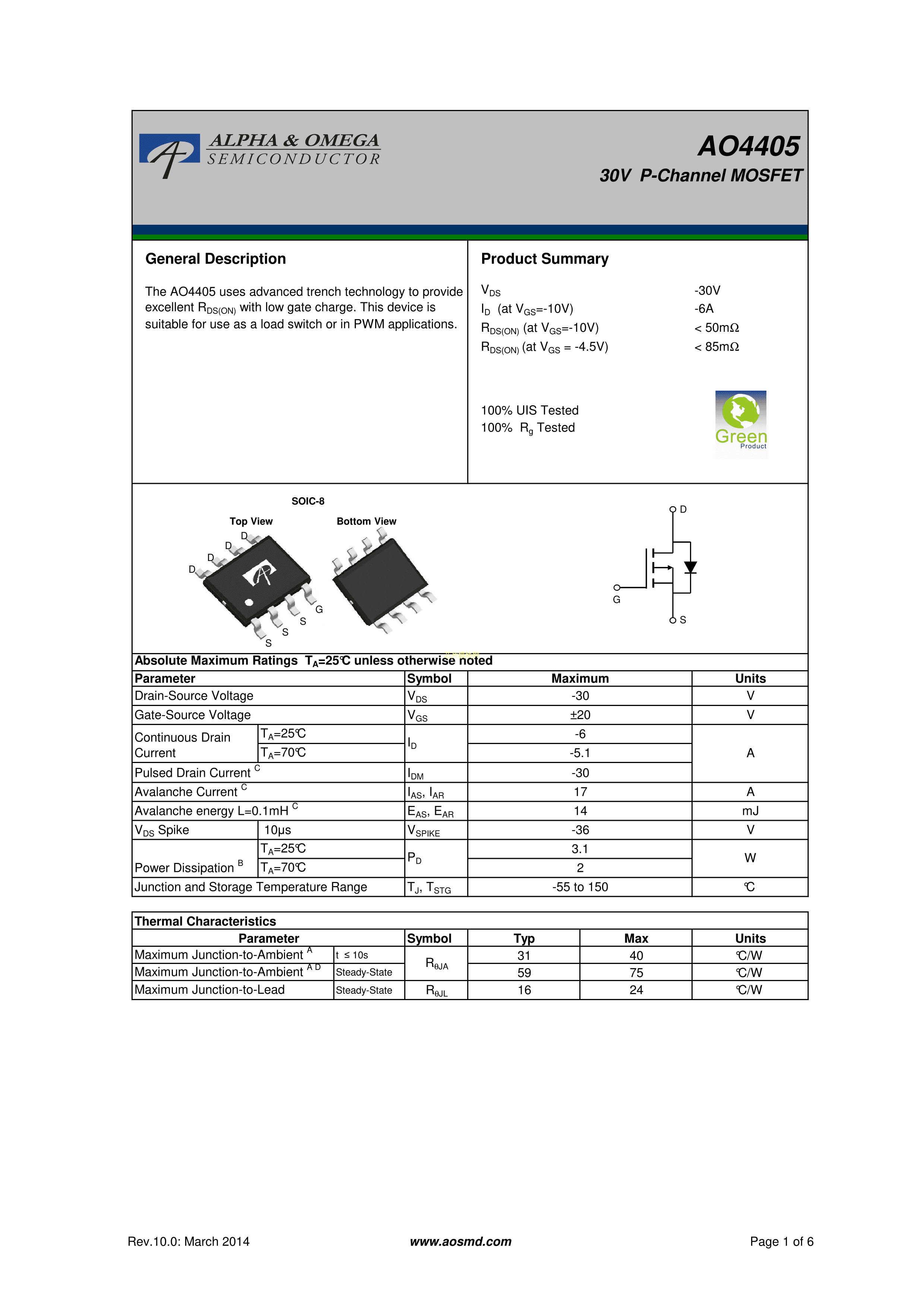 AO4405PDF规格书,中英文下载