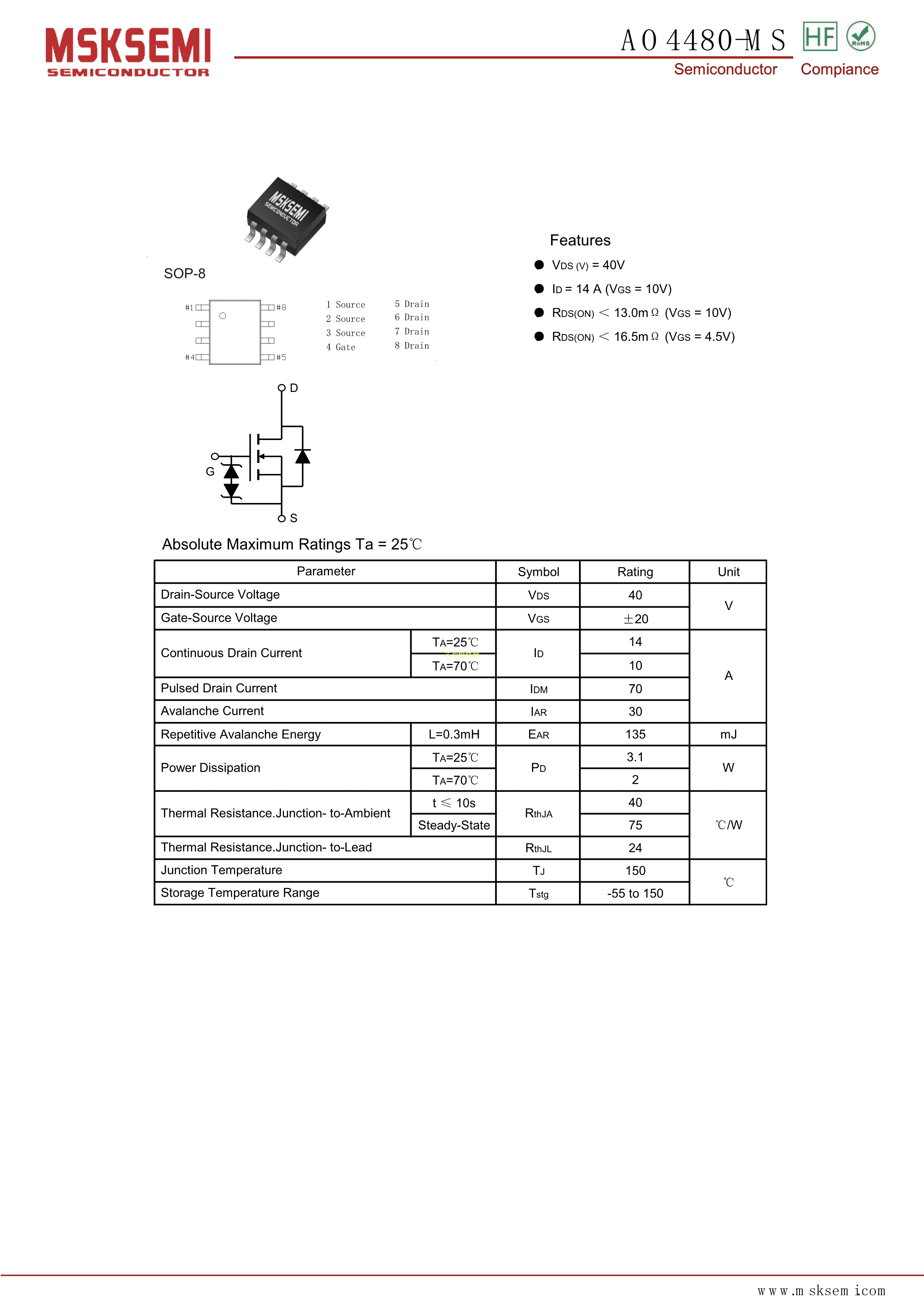AO4480-MS数据手册SOP-8封装MSKSEMI(美森科)PDF规格书,中英文下载