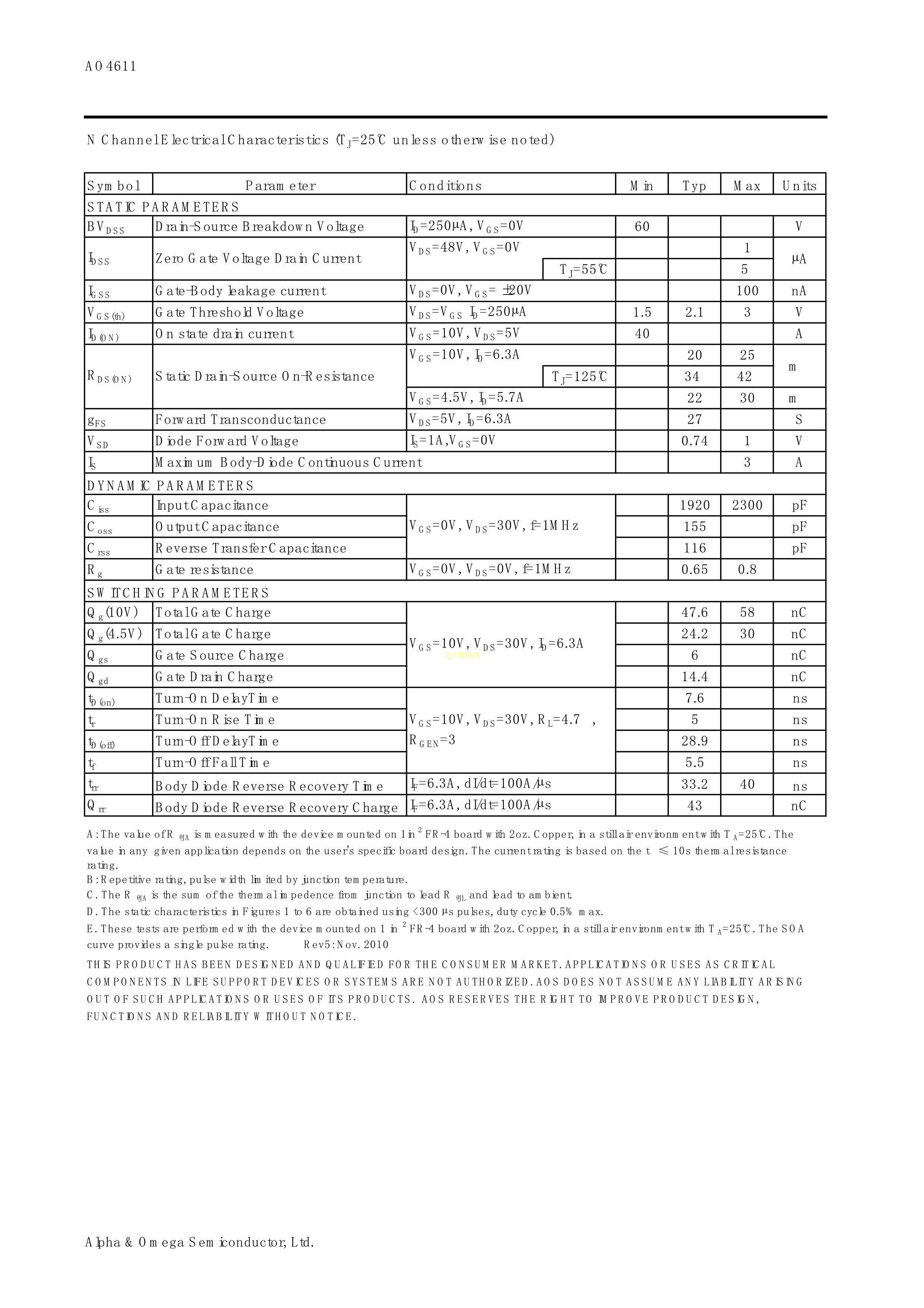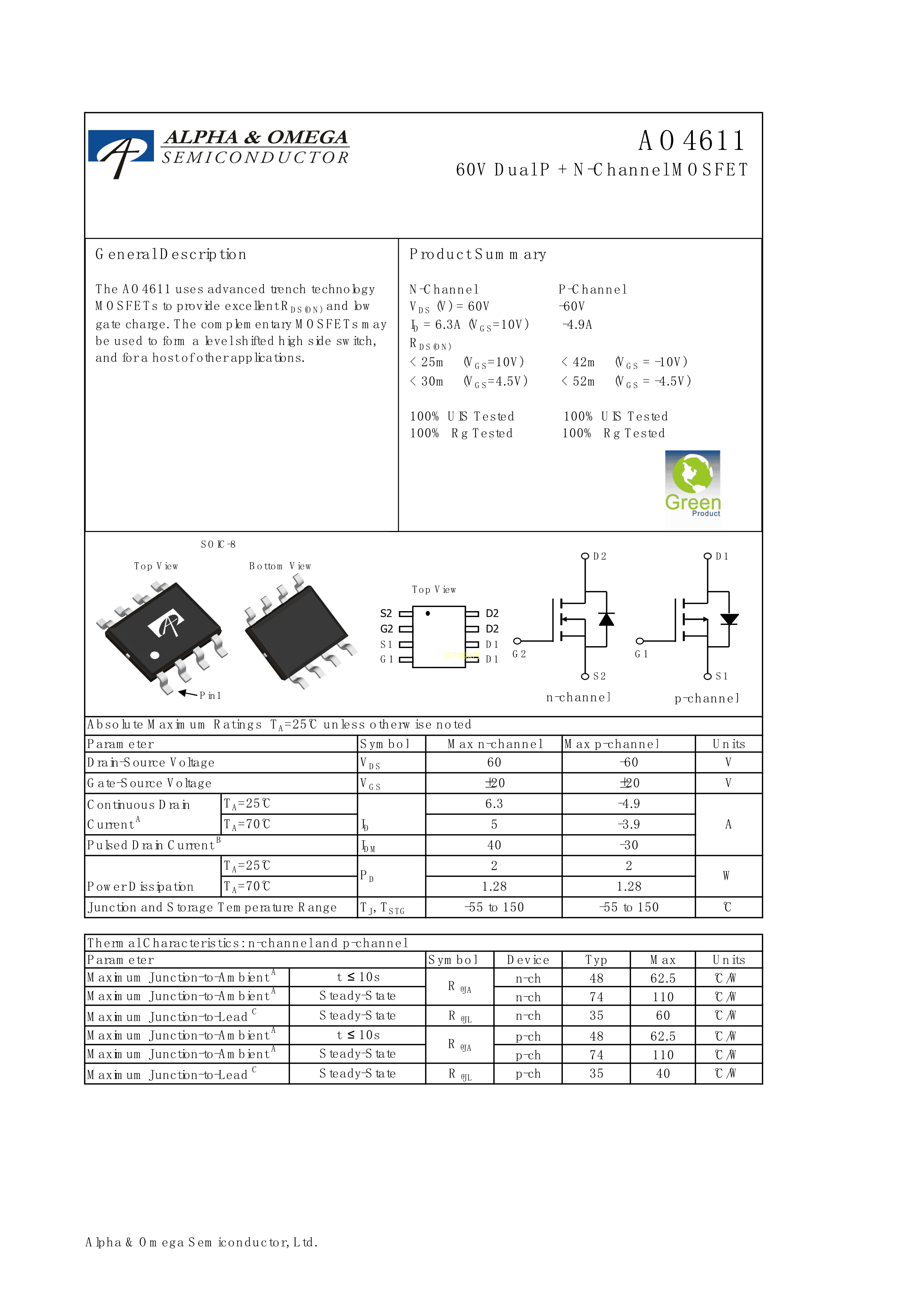 AO4611数据手册SOIC-8封装AOS.pdf