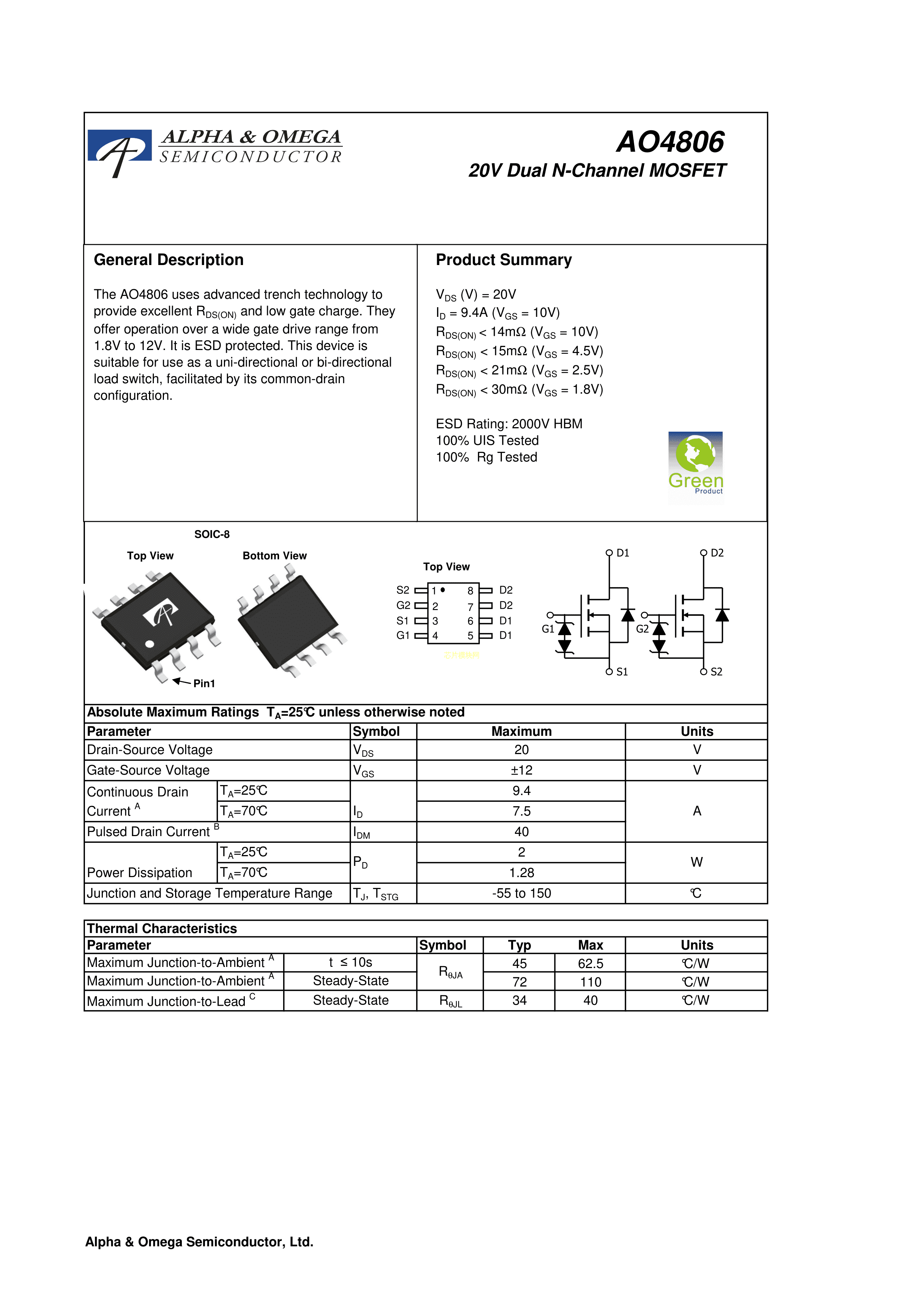 AO4806PDF规格书,中英文下载