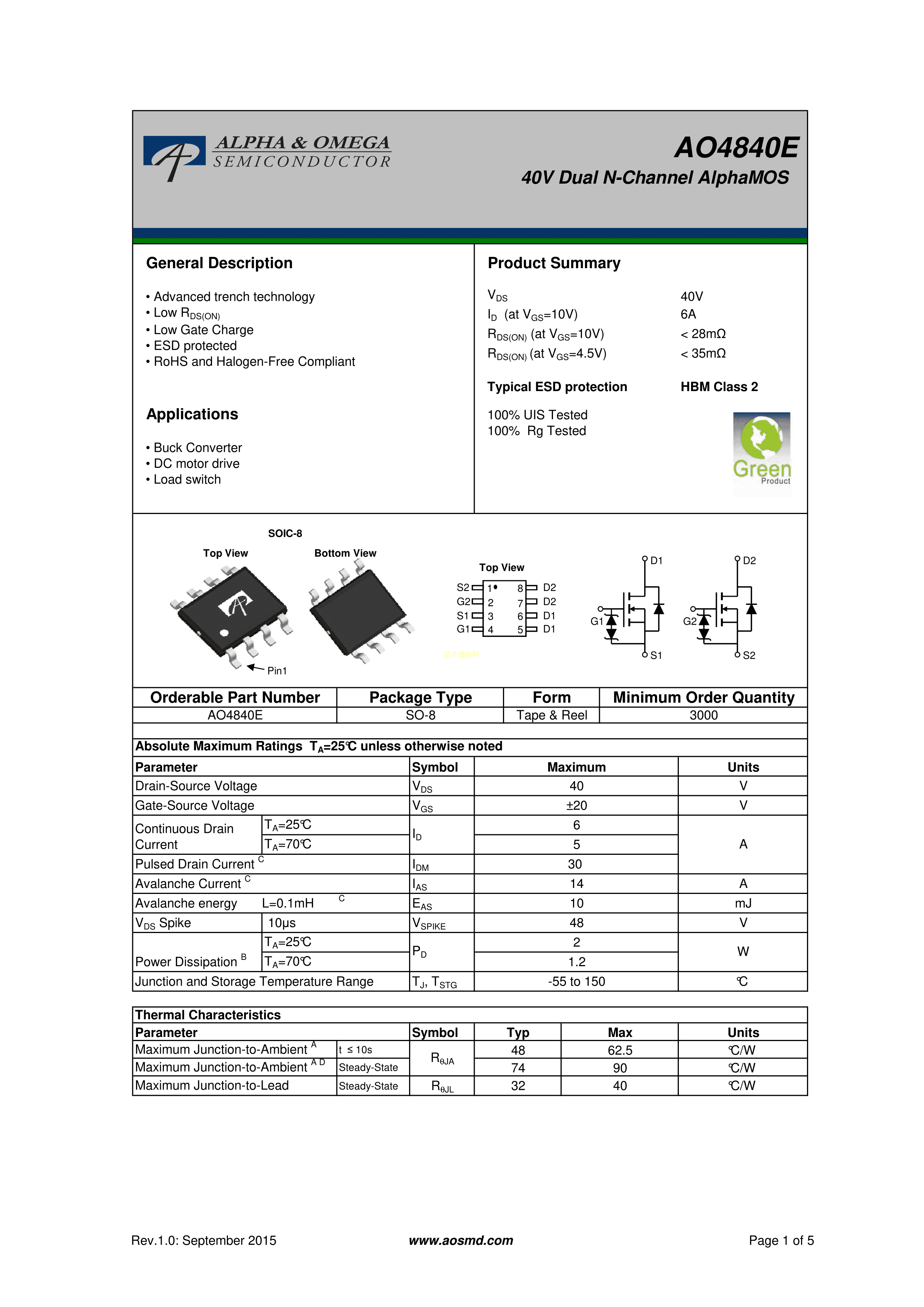 AO4840EPDF规格书,中英文下载
