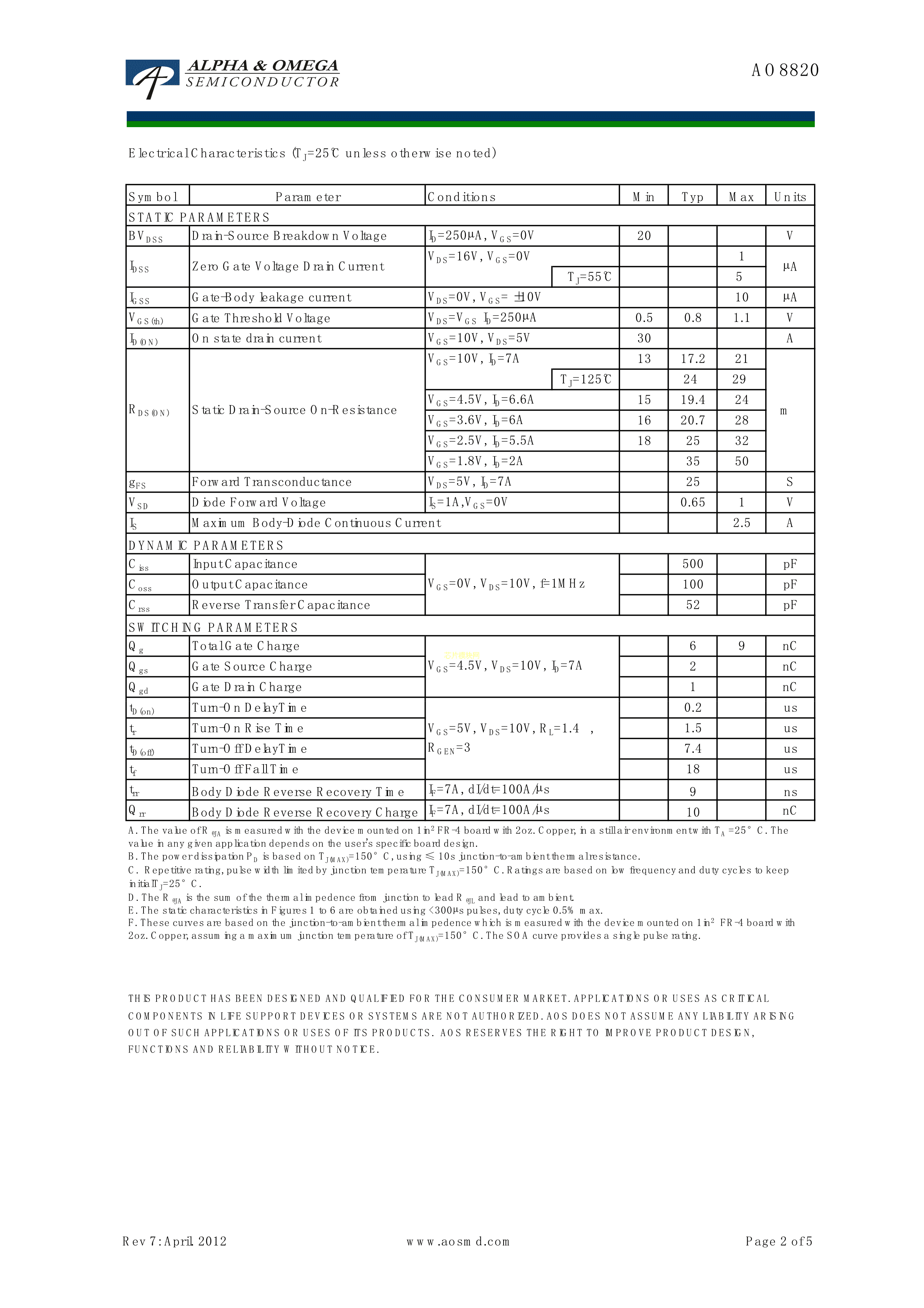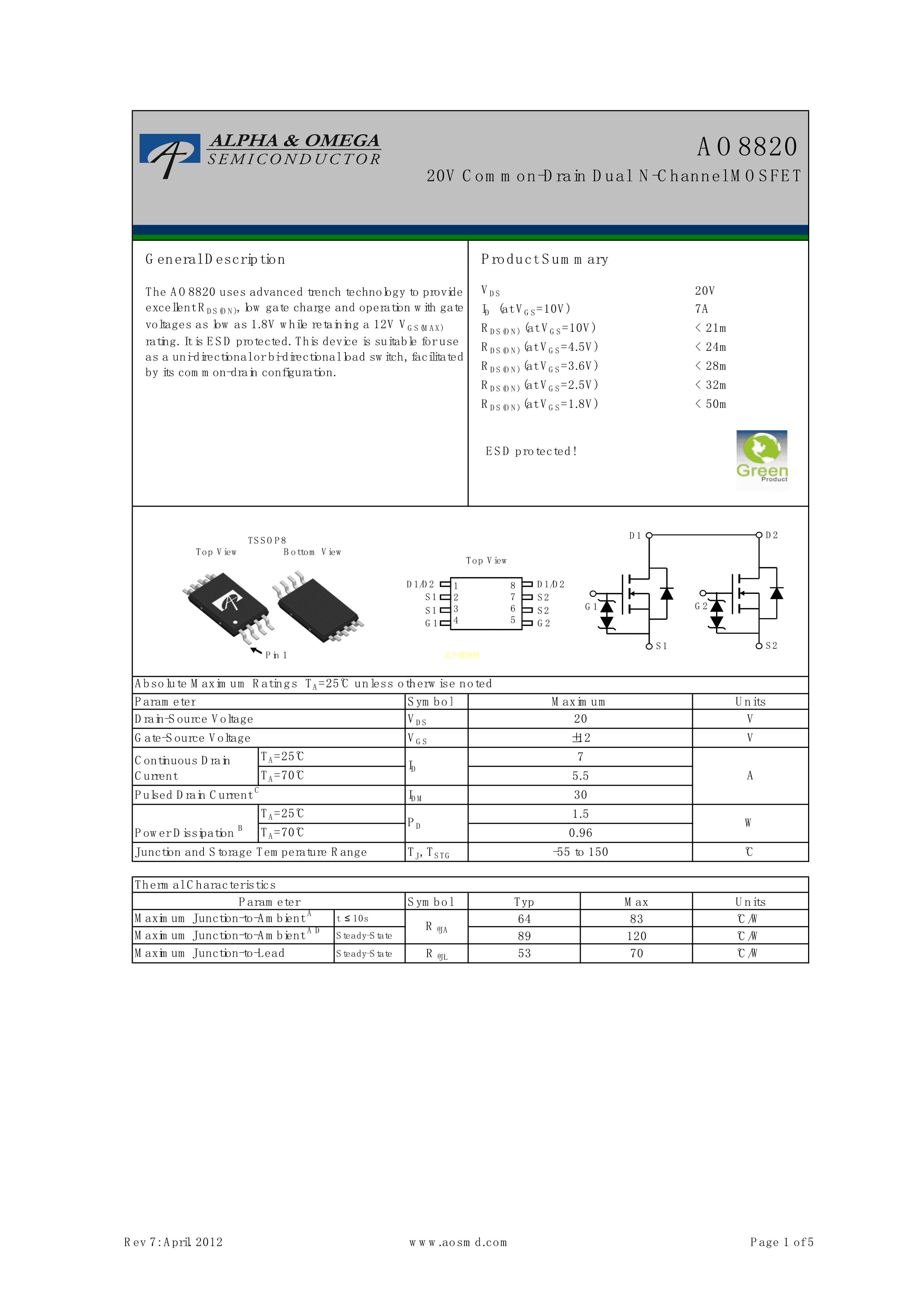 AO8820数据手册TSSOP-8封装AOSPDF规格书,中英文下载